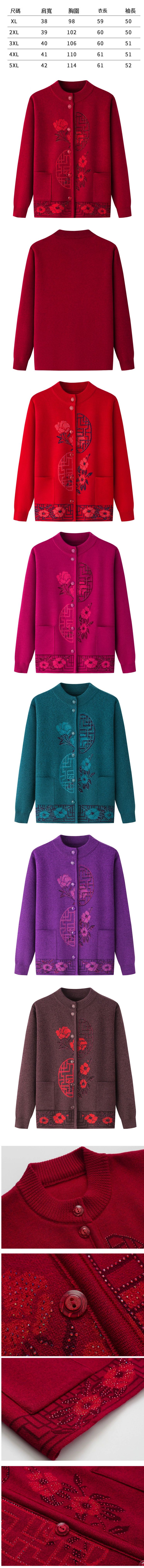 中老年開衫毛衣外套(XL-4XL碼 大紅色(不加絨))【下單後請聯絡客服確認發貨尺碼】F001099568