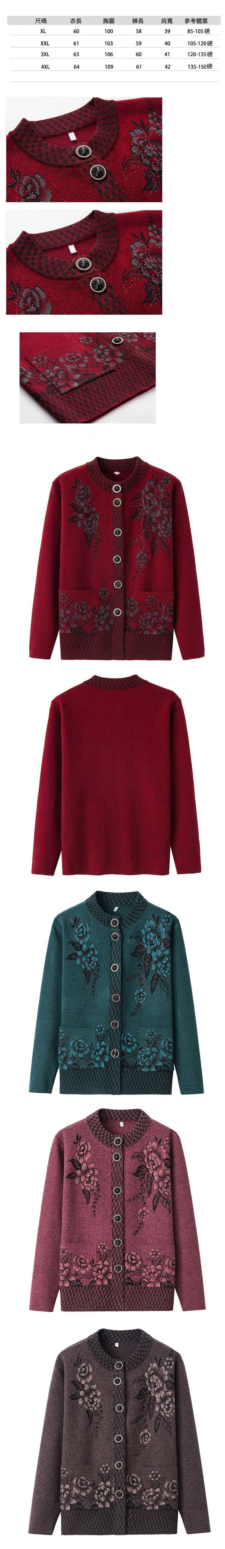 中老年開衫毛衣外套(XL-4XL碼 棗紅色)【下單後請聯絡客服確認發貨尺碼】F001099571