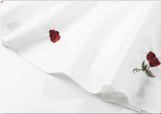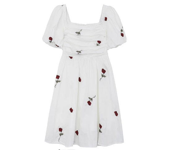 刺繡方領連衣裙(甜心玫瑰短裙)(規格:S-L碼)(下單後聯絡客服確認發貨尺碼)#F047043367