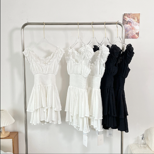 壹條裝斜肩連體褲裙(黑色/白色)(規格:S-L碼)(下單後聯絡客服確認發貨尺碼和顏色)#F047043183