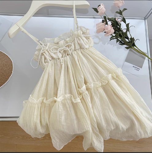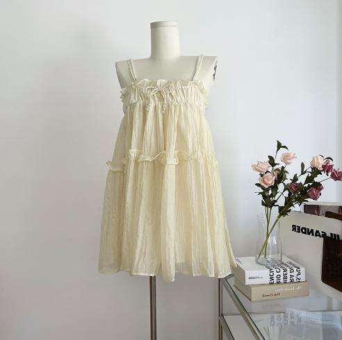 珍珠吊帶連衣裙(杏色)(規格:S-L碼)(下單後聯絡客服確認發貨尺碼)#F047043194