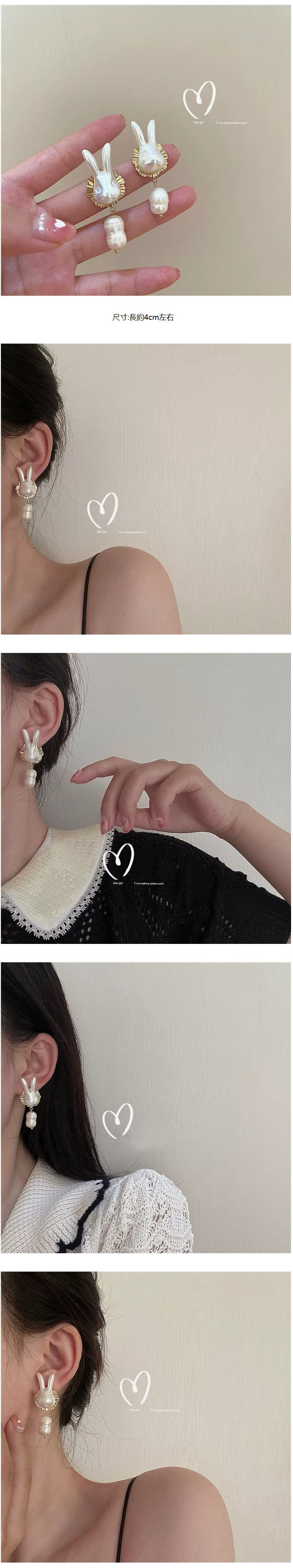 【2對裝】氣質簡約耳環 高級感耳飾(珍珠小兔耳釘+鏈條小鎖)#F001104575