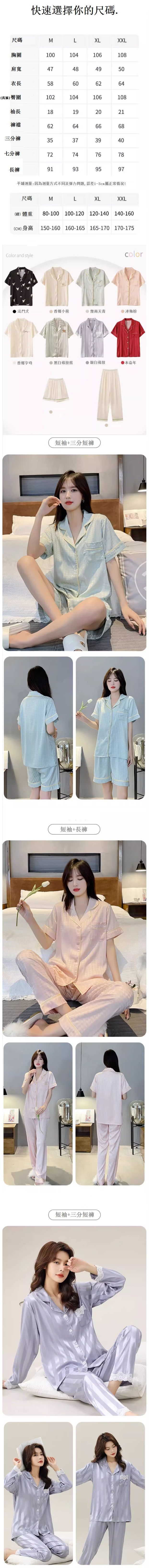 夏天短袖仿真絲冰絲睡衣套裝【夜黑(短袖短褲)】【M-2XL碼】【下單後聯系客服確認尺碼】#F078032664