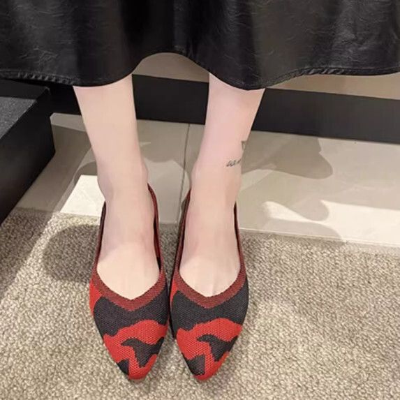 淺口編織尖頭單鞋女(紅色【35_40碼】(下單後聯繫客服確認發貨尺碼)