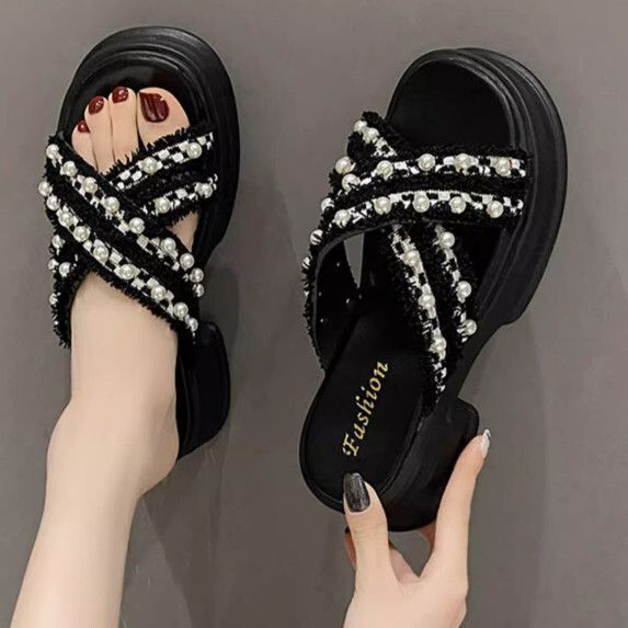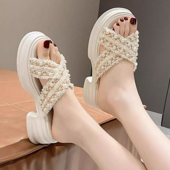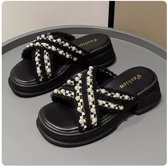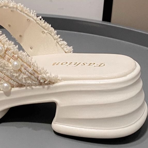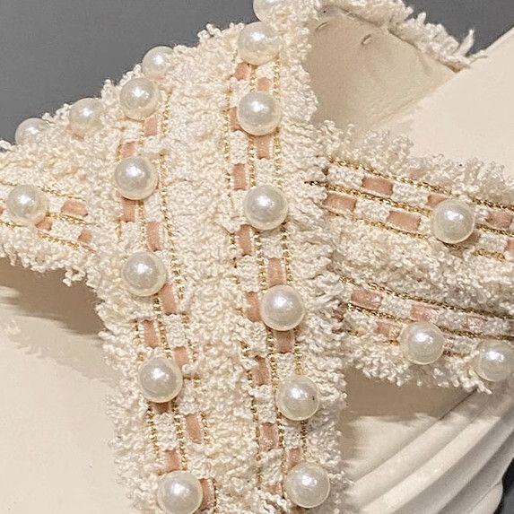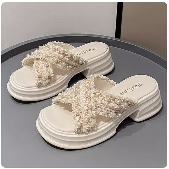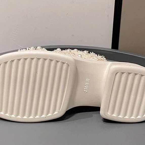 小香風珍珠厚底拖鞋女(米色【35_40碼】(下單後聯繫客服確認發貨尺碼)