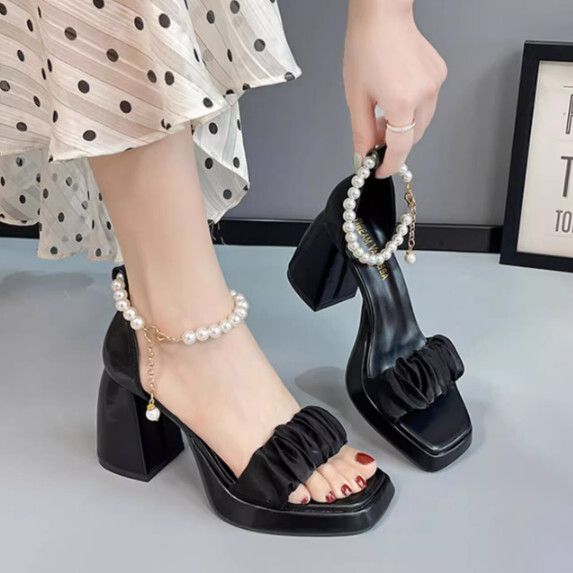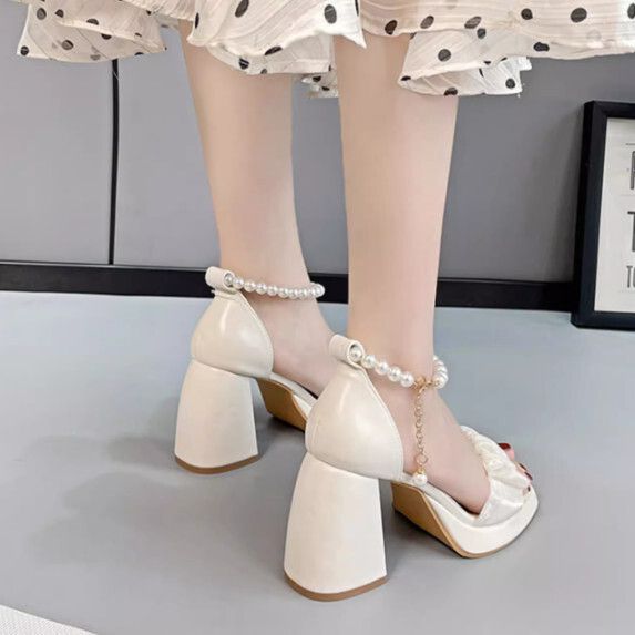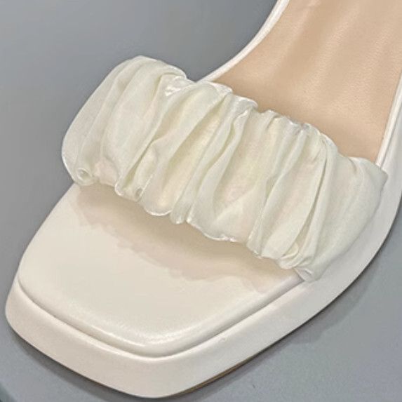 粗跟一字帶涼鞋女(杏色【35_39碼】(下單後聯繫客服確認發貨尺碼)
