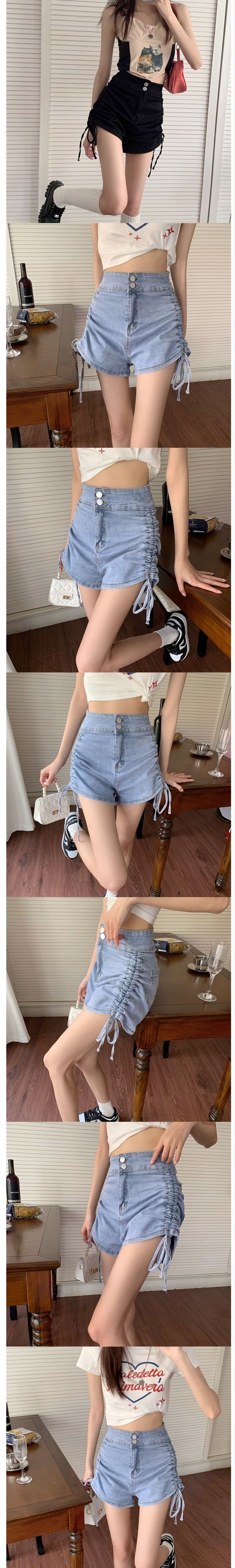 抽繩高腰牛仔短褲(藍色,S-XL碼)【下單後請聯絡客服確認發貨尺碼】#F220012124
