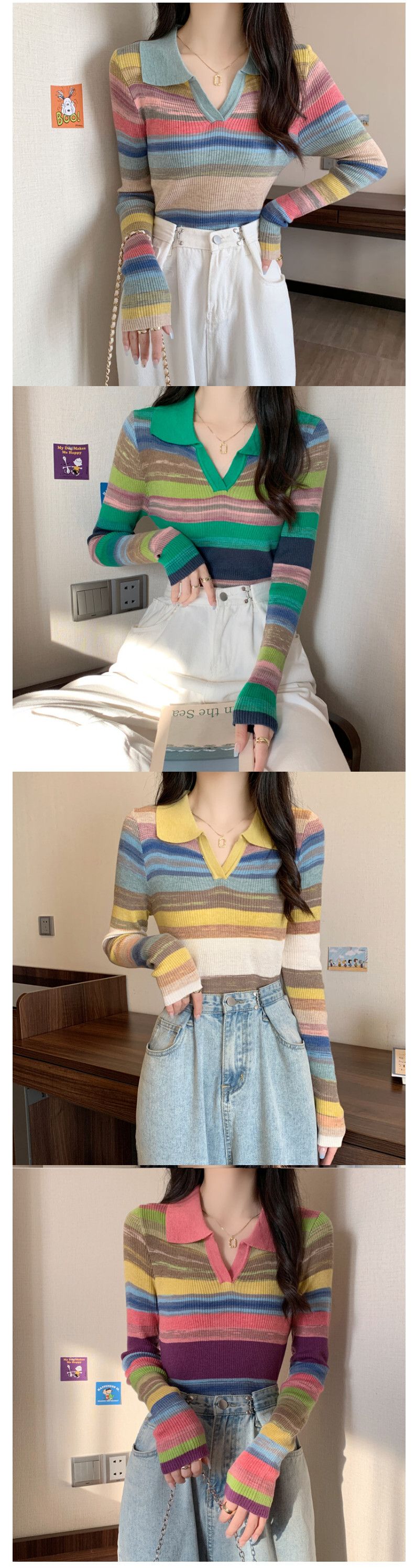 polo領條紋針織衫【藍色】尺碼【均碼】#F128014361