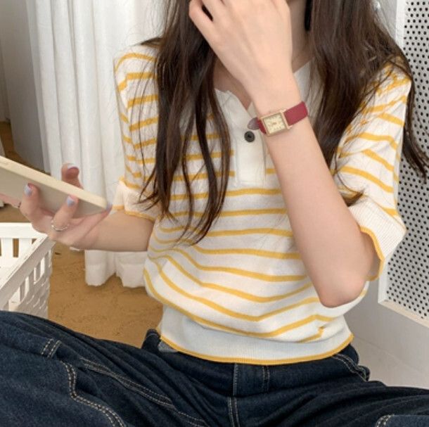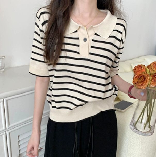 復古條紋Polo衫翻領短袖(紅色 均碼)#F46015236