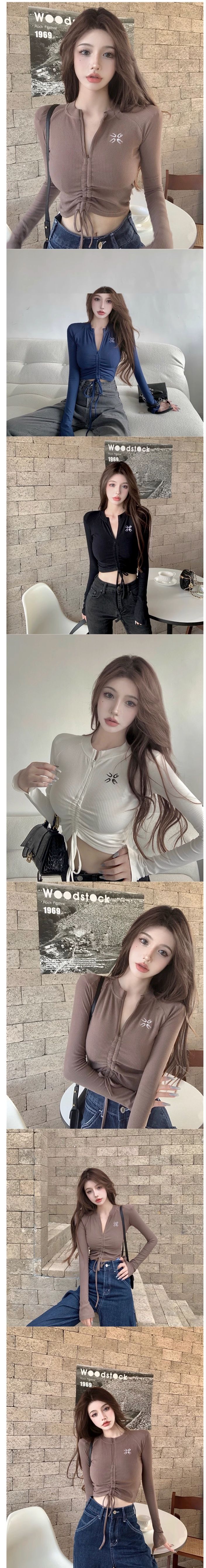 抽繩緊身顯瘦T卹(黑色,均碼)#F220012128