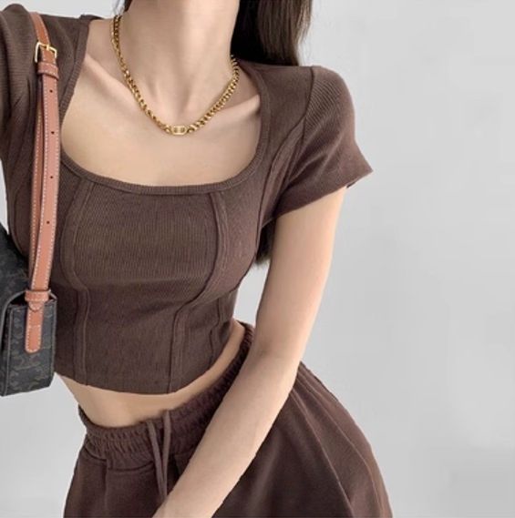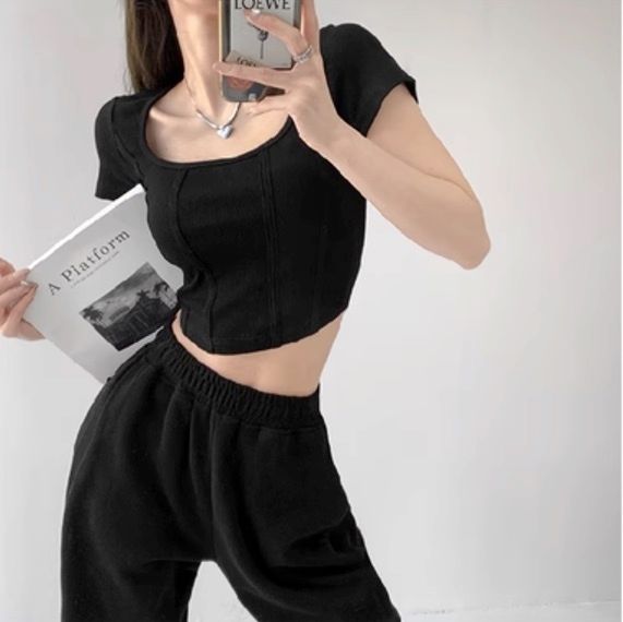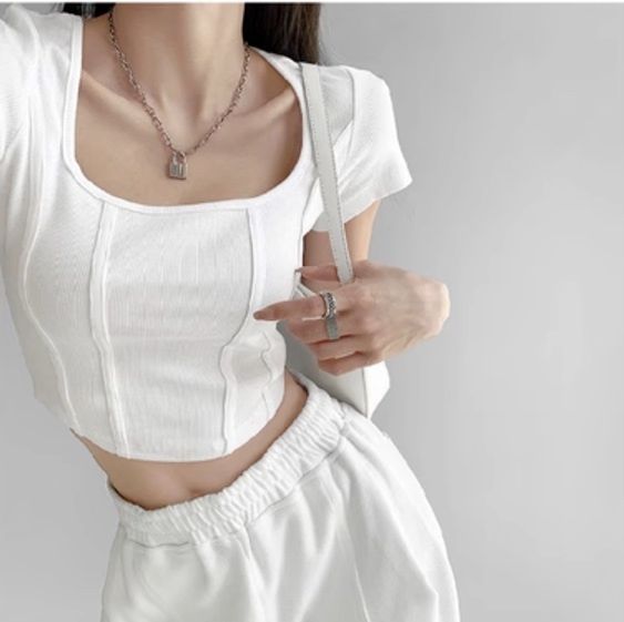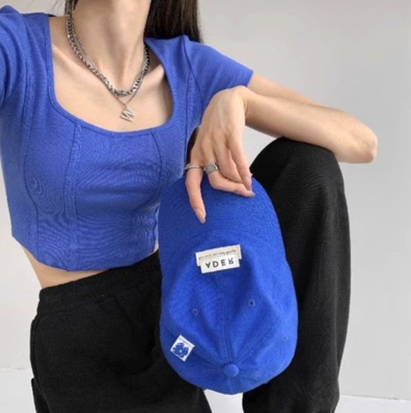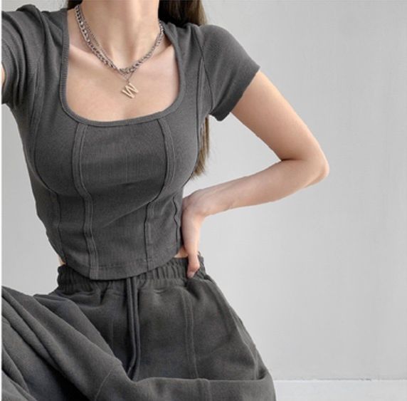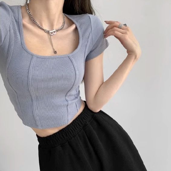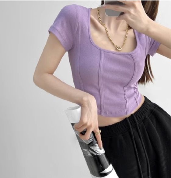 方領修身短袖T卹(翠花色,S-XL碼)【下單後請聯絡客服確認發貨尺碼】#F220012109