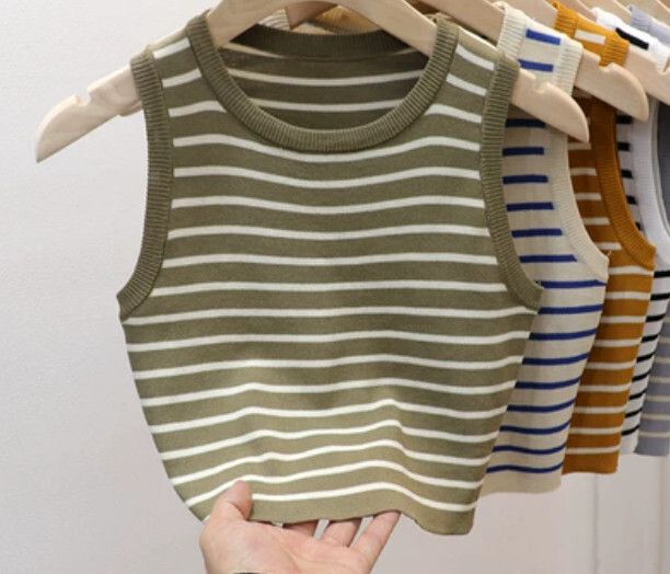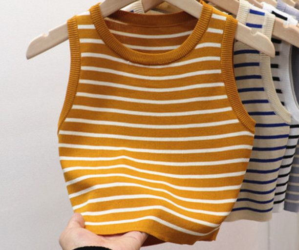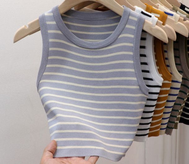 圓領條紋背心(深灰色 均碼)#F46015310