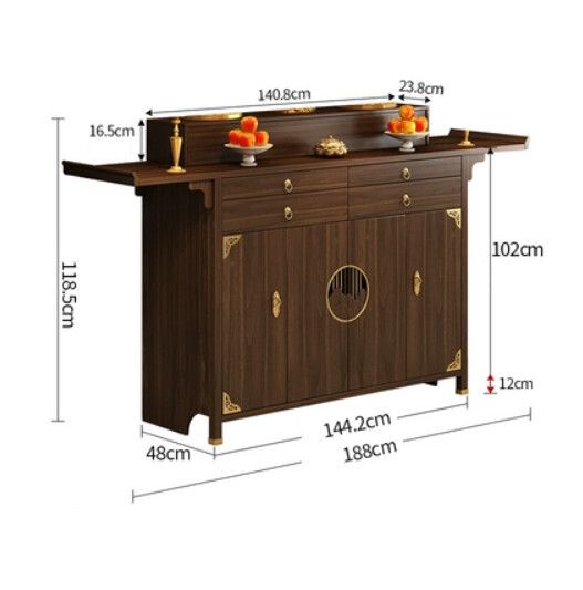 輕奢佛龕 供桌佛臺 財神爺佛櫃 中式立櫃帶門神龕【實木款】【胡桃色】供桌 188x48x118.5cm