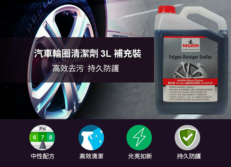 5. 配合NIGRIN EvoTec 輪圈鍍膜使用,可進一步保護輪圈