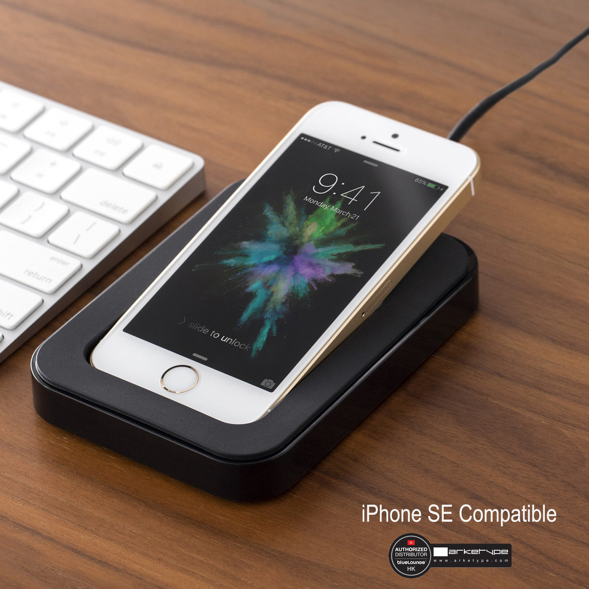 Saidokā is the ultimate iPhone-charging companion that plugs into the USB port of your computer or adapter to charge as you work. Matching the incline of your keyboard, the slight angle of Saidokā makes it easy to respond to texts, crunch numbers using your phone's calculator or utilize apps. Designed for iPhone SE (2016).