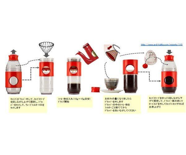 The Kalita Go-Brew is a take-away bottle you can use as a manual filter coffee maker. In a few steps, you can enjoy a freshly-made coffee: