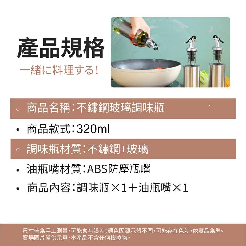 Description Stainless Steel Seasoning Bottle Container for Home Kitchen Oil Soy Sauce/ Alcohol/ Vinegar(320ml)