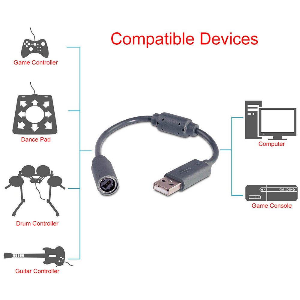 Compatible with Xbox 360 Rock Band and Guitar Hero wired guitars and drums, Dance Pads & any other gaming devices that utilize breakaway connections.