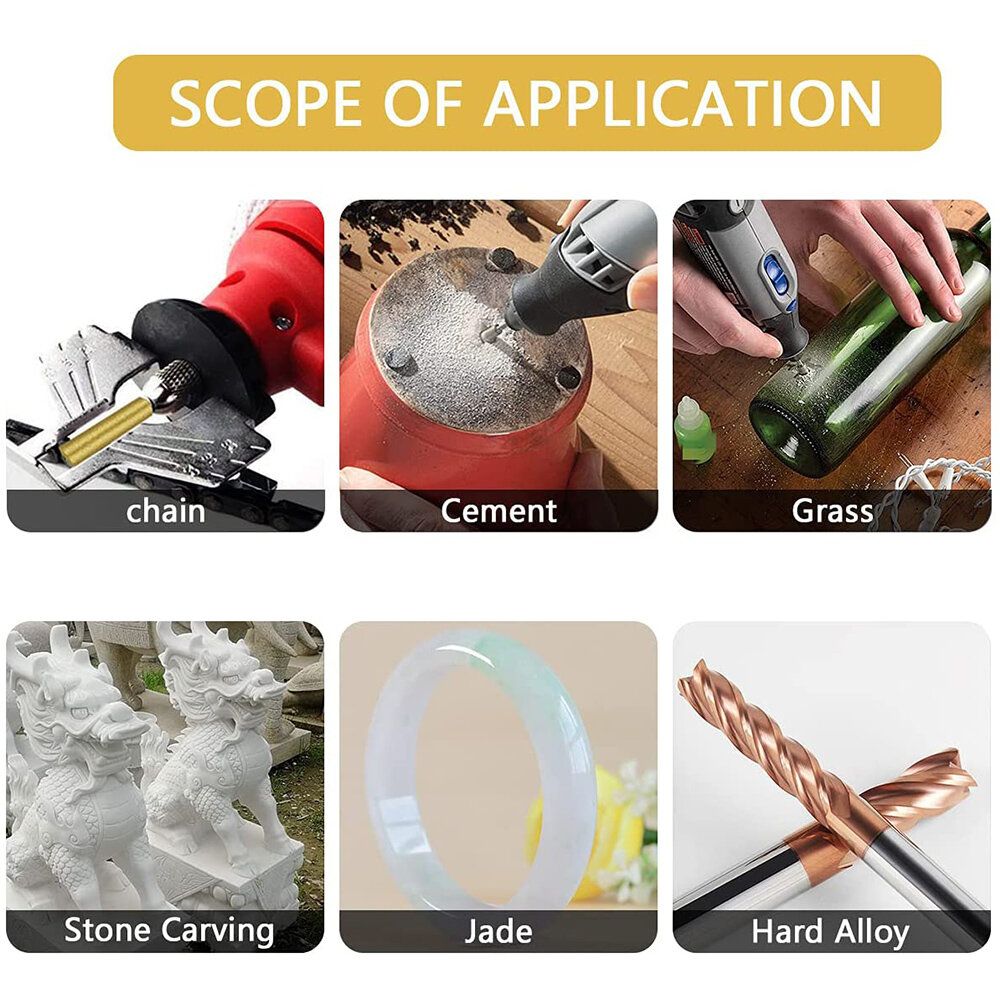 Applies to: These grinding heads for electric saw sharpeners are suitable for metal polishing, such as electric saws, jade, wood, molds, steel, etc.