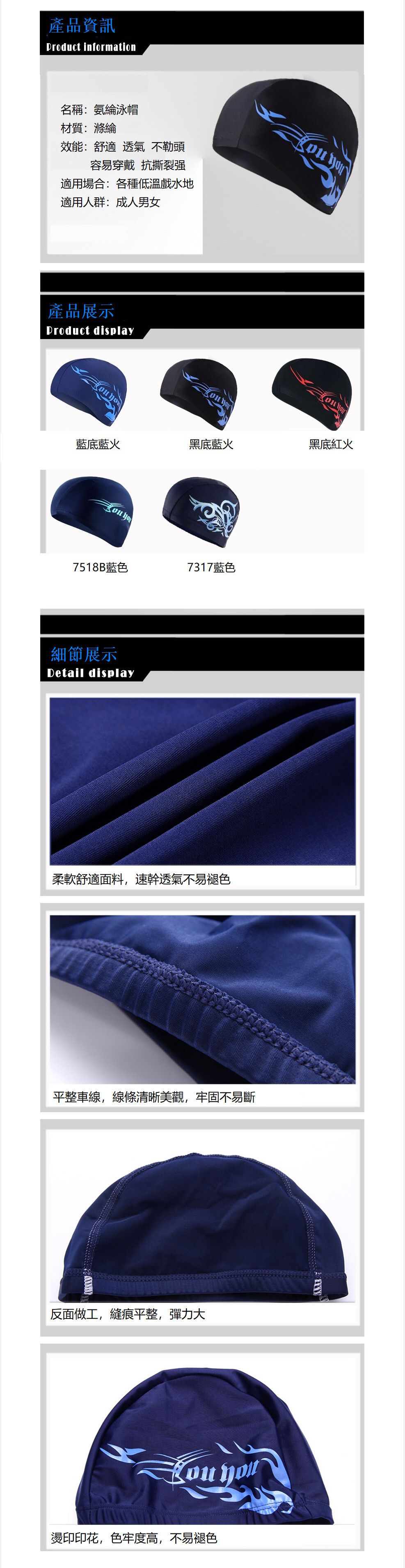 男士氨綸布泳帽(黑色TP06)