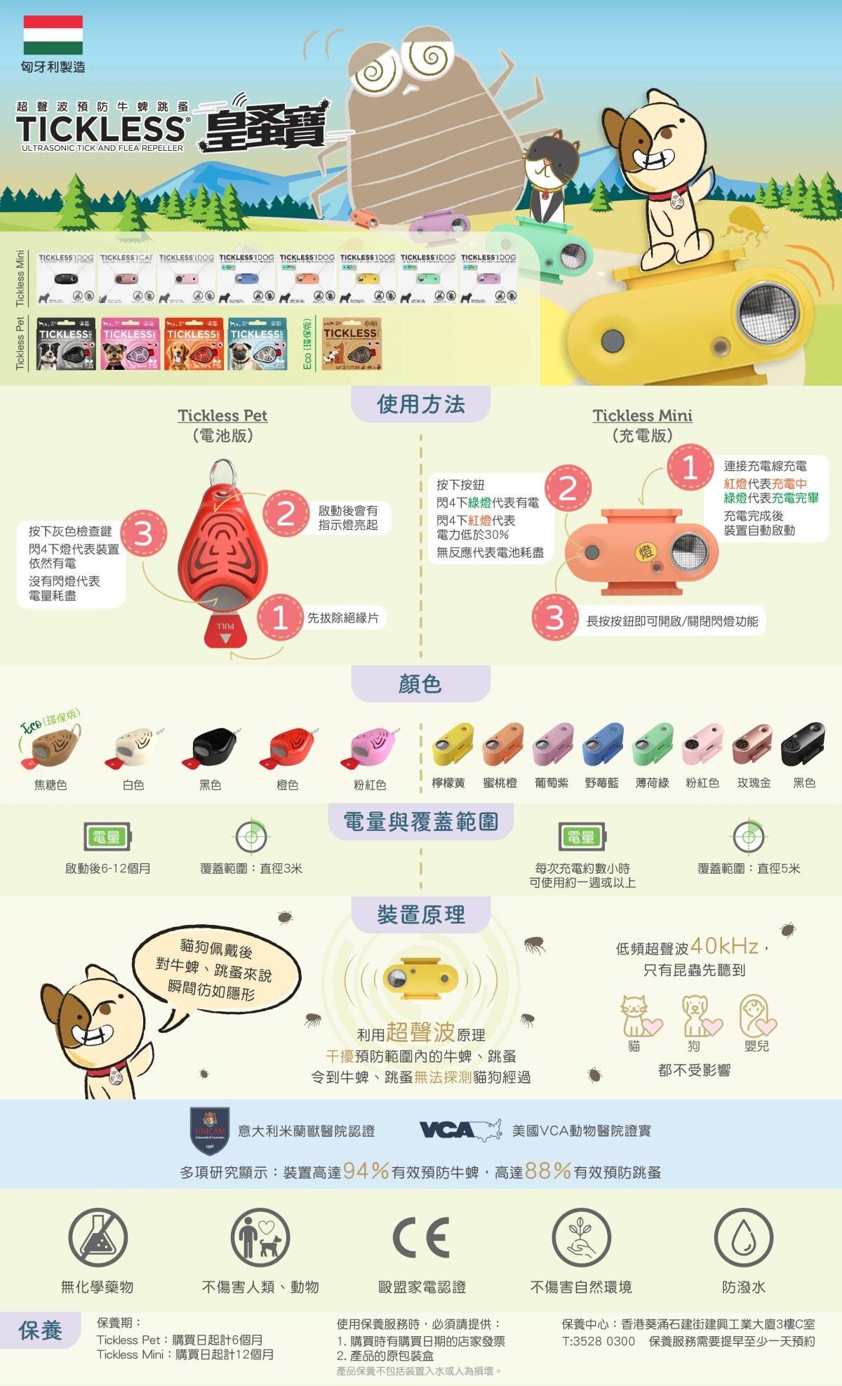 Tickless Mini Rechargeable device emitting ultrasound to prevent ticks and fleas for Dogs - 94% efficiency against ticks without using any chemicals - Rechargeable - Chemical free - Especially designed for small-sized pets - Nightlight function for visible comfort at night - Safe to use even for young, elderly, ill- or pregnant pets - Scientifically proven - Preventive solution |