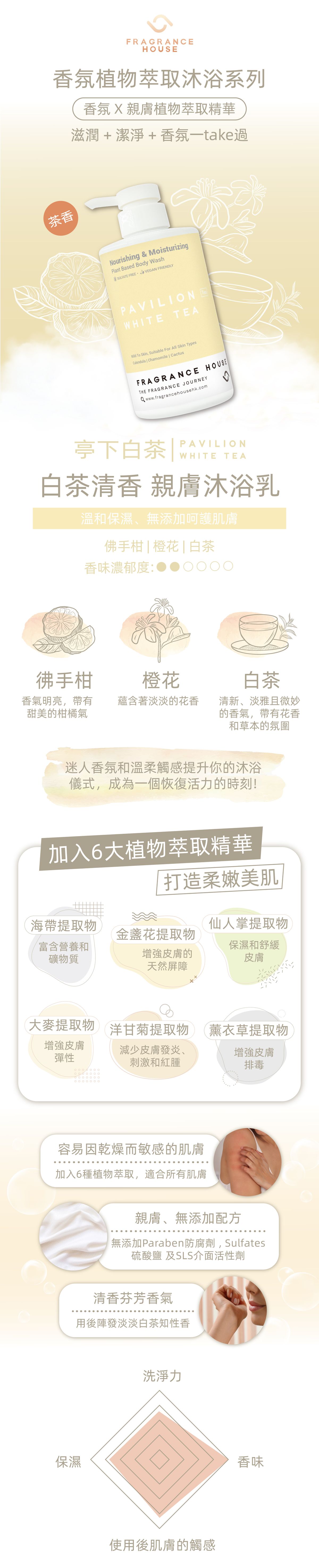 Founded in Hong Kong, Fragrance House is a fragrance brand that blends stylish and playful scents to enrich your space and social life. By combining manifold ingredients together to create astonishing fragrances, there are over 30 aromas, such as woody, floral, sweet, etc., which are delicate and unique. Our most popular 'Pavilion White Tea' collection exudes a soft, elegant and long lasting smell with a unique citrus taste of bergamot and a refined white tea touch will definitely give you a fascinating experience.