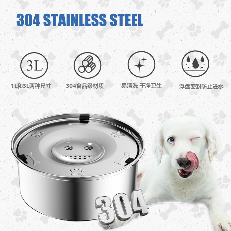 Stainless steel pet suspension bowl, with controlled water output to prevent blackening of the chin, resistant to drops, bites, and corrosion; Available in two capacities of 1000ML and 3000ML, with a large capacity for refilling water, enough for pets to drink for a day;