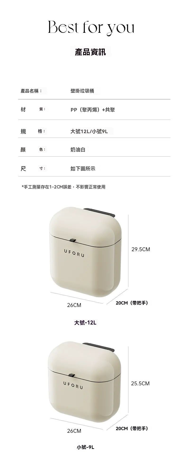 Style: Cream White - 9L This space-saving trash can is a real space saver! With a 9-liter capacity and a wall-mounted design, it can be easily installed in bathrooms and RVs, saving floor space. The airtight, odor-resistant lid fits snugly, effectively locking out odors for a fresh, always-fresh environment. The durable, easy-to-clean material and refined design complement a variety of environments, enhancing your convenience and quality. |
