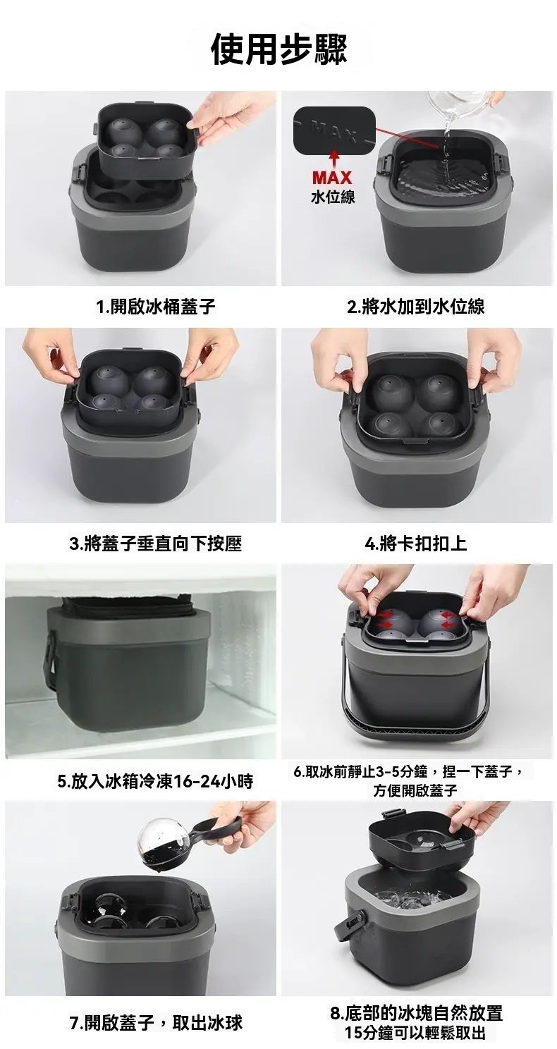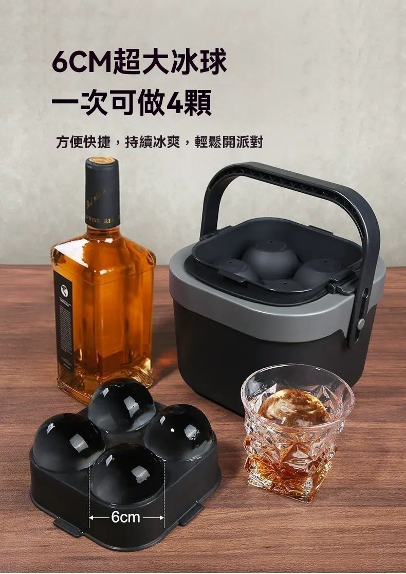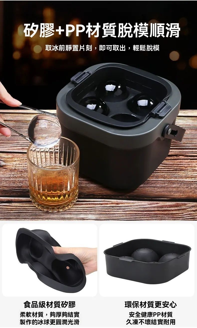 Material: Silicone Weight: 520g Color: Black Professional whiskey ice ball mold, made of food-grade mildew-proof silicone material, can easily make crystal clear bubble-free round ice balls. Thickened design slowly melts without diluting the liquor, perfectly fits the wall of the cup to enhance the wine tasting experience, and is a must-have artifact for whiskey and cocktail lovers!
