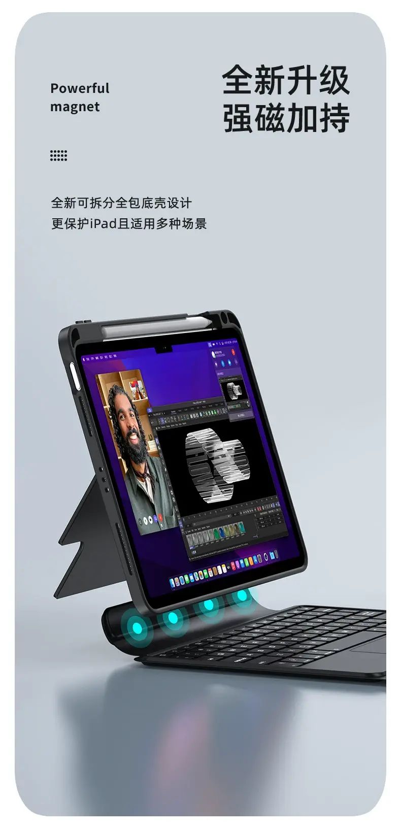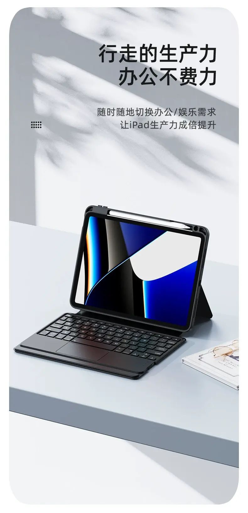 | Description | This iPad keyboard case is the perfect partner for the 10th generation 10.9-inch iPad. Its unibody design is simple yet practical, and the magnetic detachment allows for flexible and easy installation, catering to various usage scenarios. The Bluetooth wireless connection is stable and fast, and the Magic Keyboard provides smooth and precise typing, instantly transforming your iPad into a highly efficient work tool. Whether for studying, note-taking, or entertainment like watching videos |