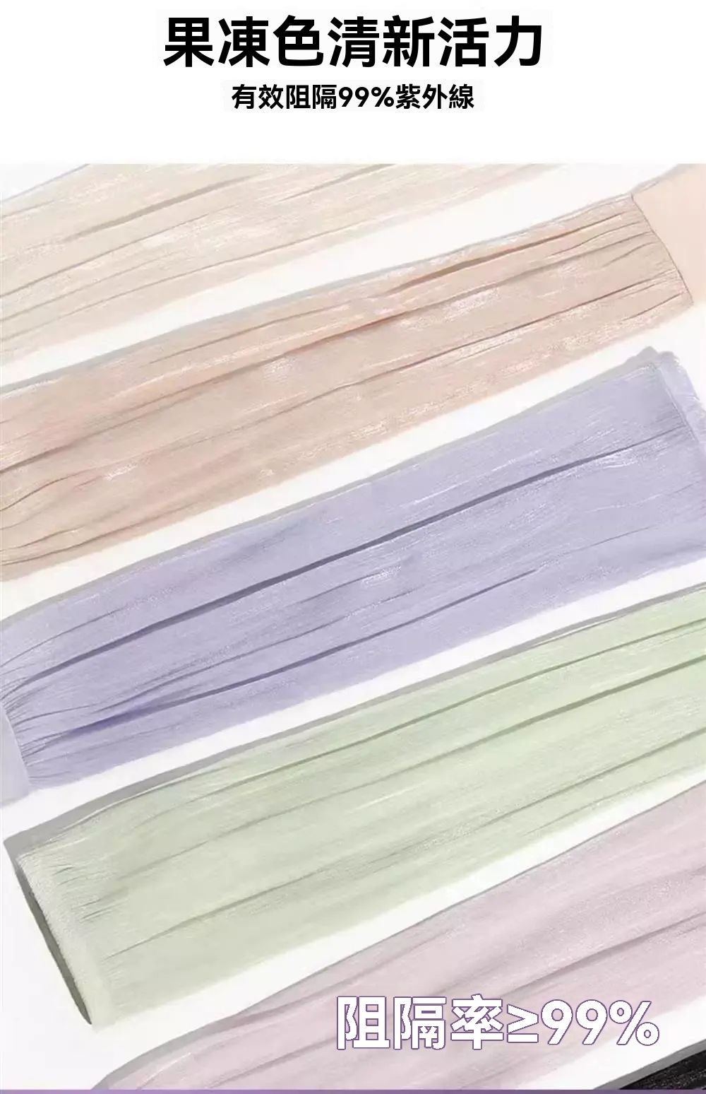 Material: Nylon Weight: 100g Color: Pink, Fruit Green, Purple, Beige, Black, Light Green, Lavender Purple, Light Purple, Light Pink, Apricot White A must-have for summer sun protection: Streamer Ice Silk Sleeves! Made of UPF50+ UV protection fabric, it is light, breathable and not stuffy, and has elasticity to fit all arm circumferences. The colorful streamer design is fashionable and versatile, and can be used for driving, cycling, and outdoor sports.