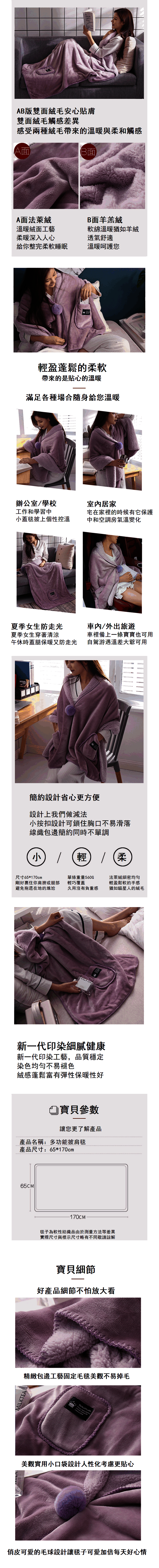 Description 多功能披肩毯【顏色深灰】【尺寸規格65*170尺寸1.2磅】#(GTN)