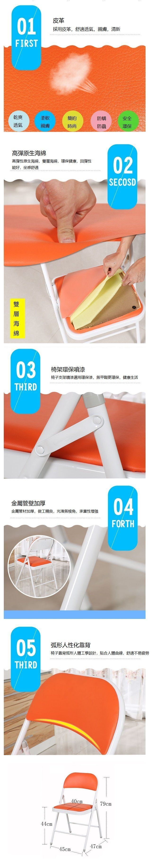 Description 時尚彩色摺椅(加強鋼板底座雙層海綿白腿粉色)#(GTN)