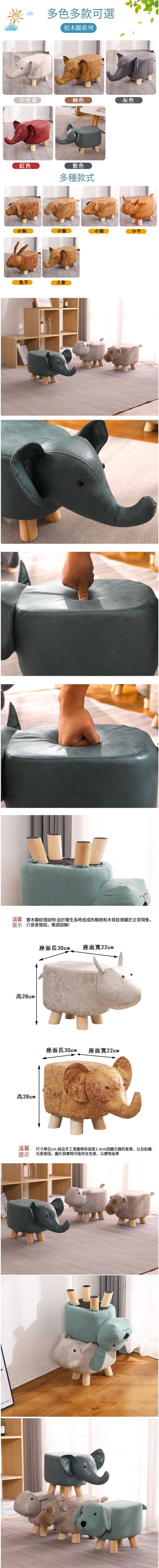 Description 實木矮凳創意動物卡通座椅小板凳【科技布小象-白色】 #(GTN)