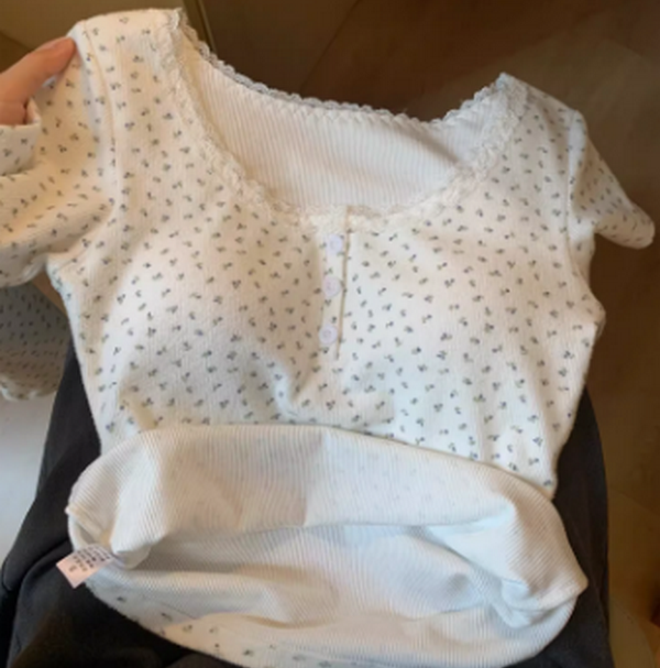 蕾絲碎花帶胸墊長袖打底衫(杏色S-XL)(下單後聯絡客服確認發貨尺碼) G352003012