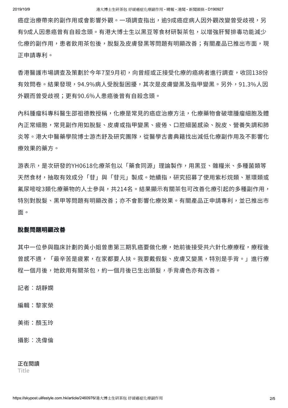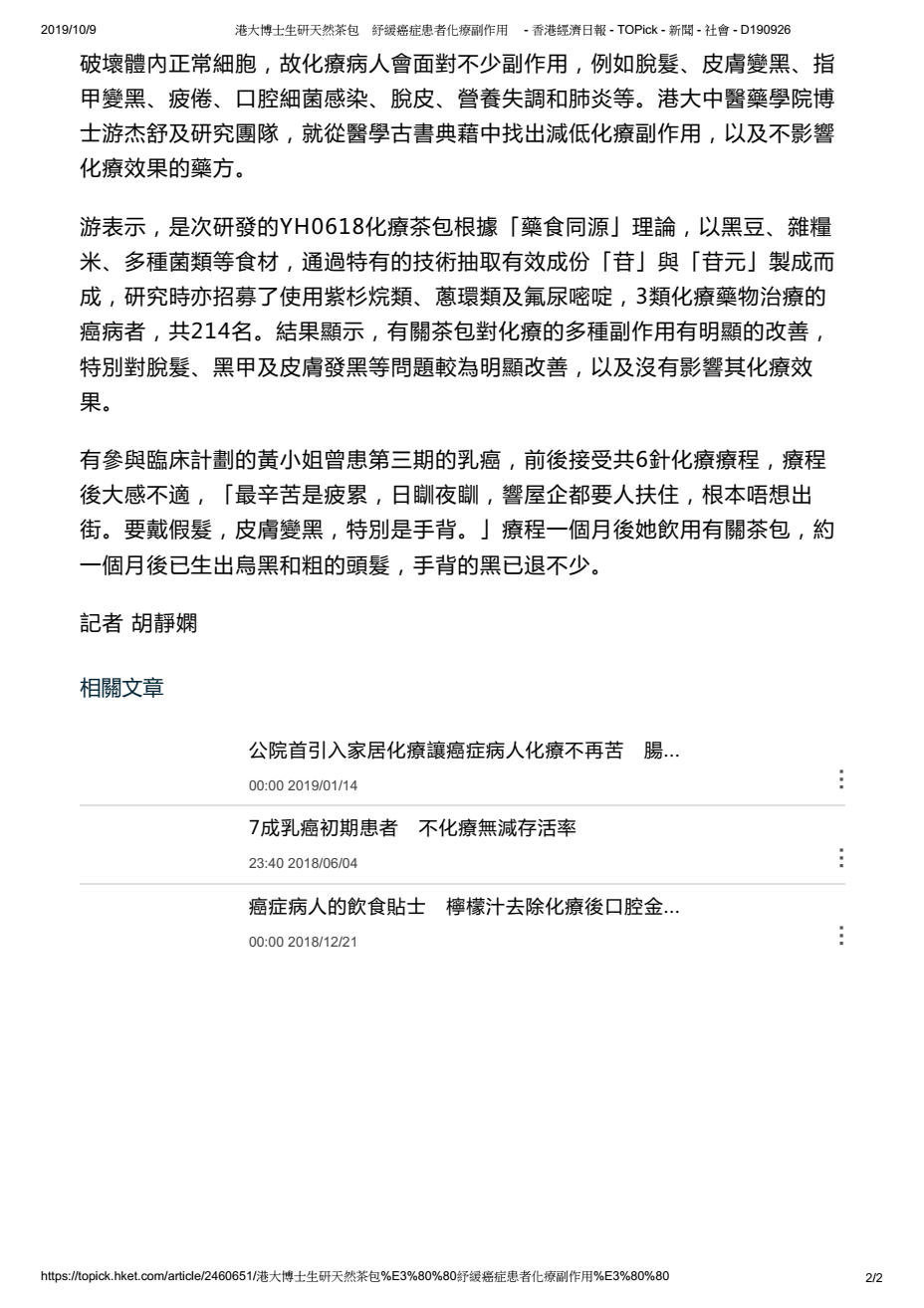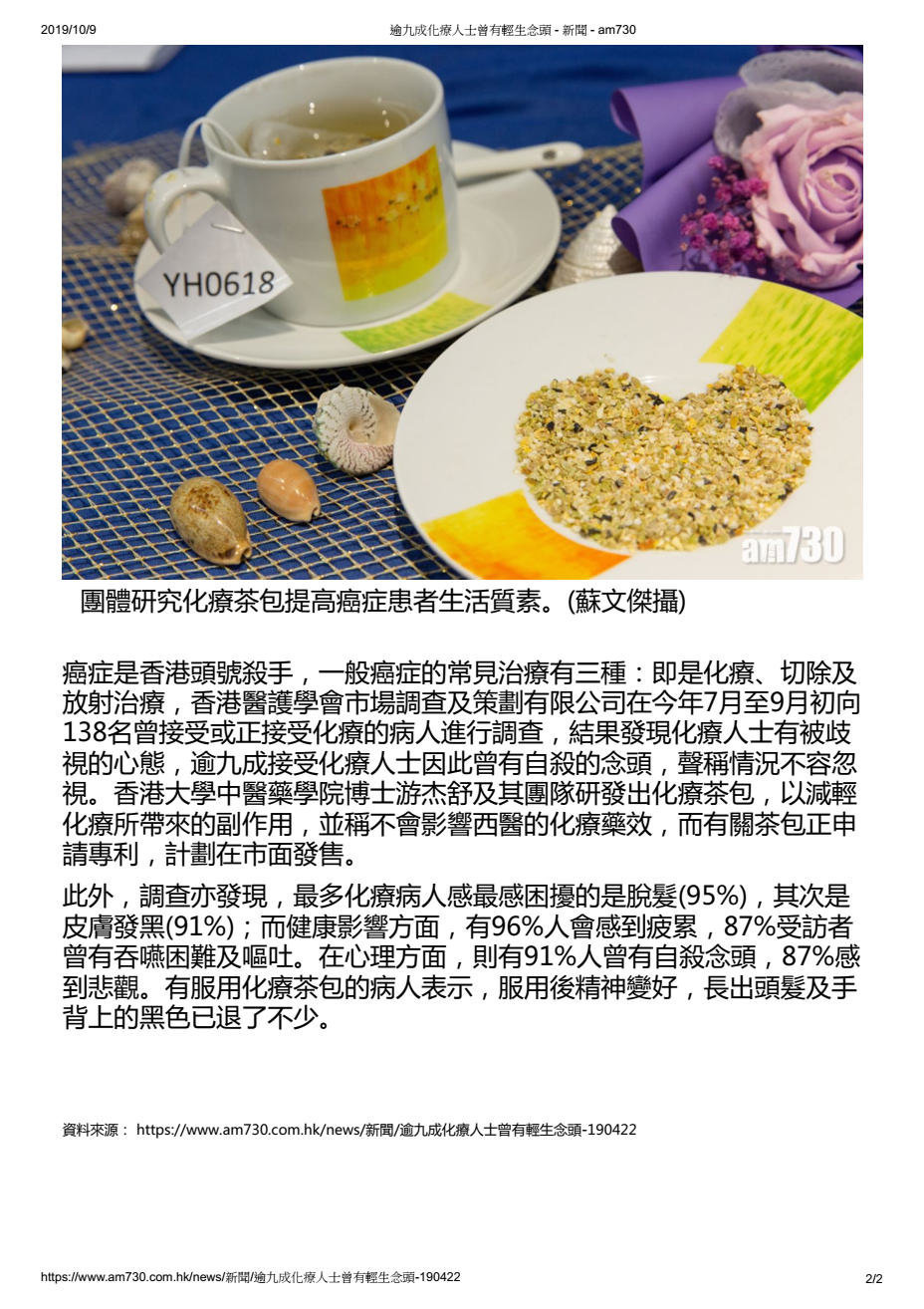 (健康博士)療康佳YH 0618茶包是一款安全、有效及獨特,並可與化療藥同服的醫食同源茶包,用於“減少化療副作用的藥食茶包”,並由香港著名權威大學在創新科技署和企業的支持下研發的成果。是唯一由官方支持、大學研發及已被臨床証實有效的藥食茶包。