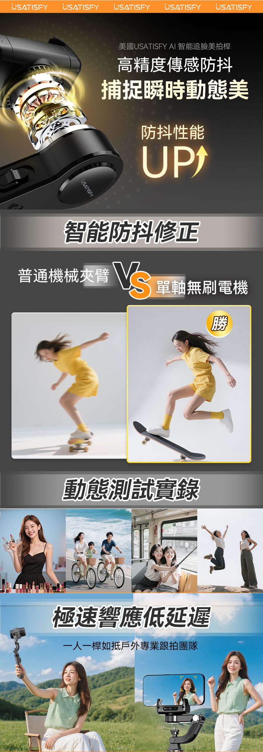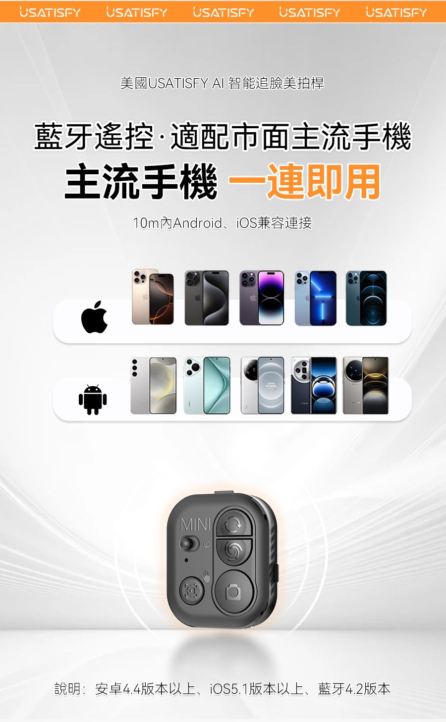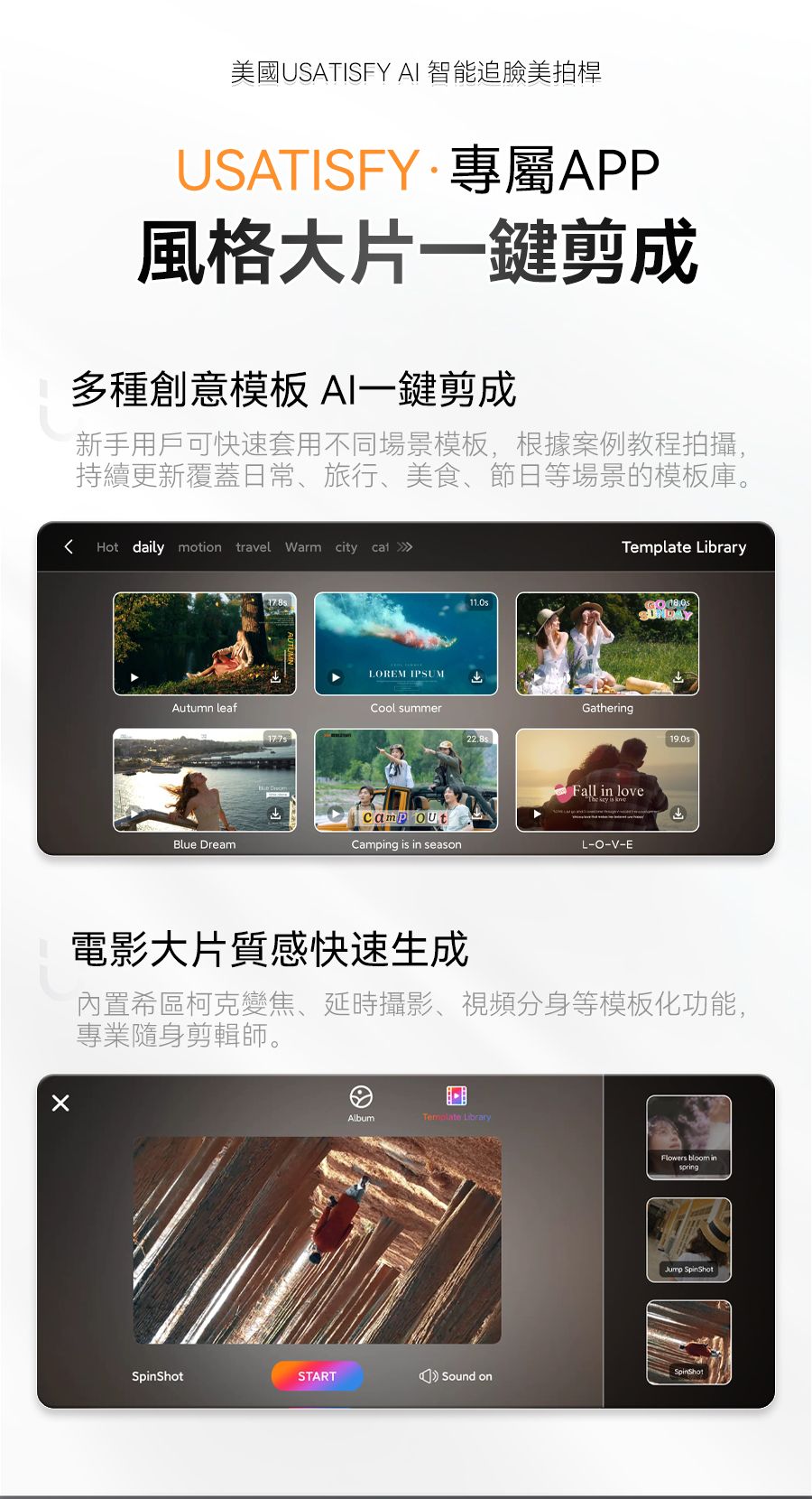 1.行業創新性AI自動人臉追蹤技術,高清原相機零延遲隨時捕捉最美角度與瞬間,獨立鏡頭無需搭配APP即刻啟用。 2.AI自定位技術搭配智能防抖動雲台,支持360°無限位旋轉,俯仰前後軸270°旋轉,消除機械限位帶來的卡頓感,適合拍攝創意轉場、環繞視角等專業畫面,降低手動運鏡門檻。 3.搭載mini可拆卸藍牙遙控器,可控制雲台轉動讓動態畫面更平滑更具沉浸感更有創意,可一鍵生成電影級動態效果。 4.獨家專利多角度夾取,夾扣豎拍橫拍俯拍。 5.內置AI智能專業模版讓新手零拍攝基礎拍攝出大片,小白用戶可快速套用模板,通過AI自動剪輯快速成片。 6.伸長後等身高直立,滿足多場景使用。折疊後大小迷你,可放入隨身包。 7.自帶1/4通用電子設備外接接口,多設備使用。通用接口,可適配運動相機、補光燈、麥克風等,實現更專業的拍攝、直播一體架應用。 8.航空級鋁合金拉桿與加大面積穩固三腳架結構,應對多種複雜地貌及天氣,也穩固不倒。
