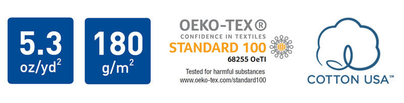 • 180 g/m2 (每平方碼 5.3 盎司)