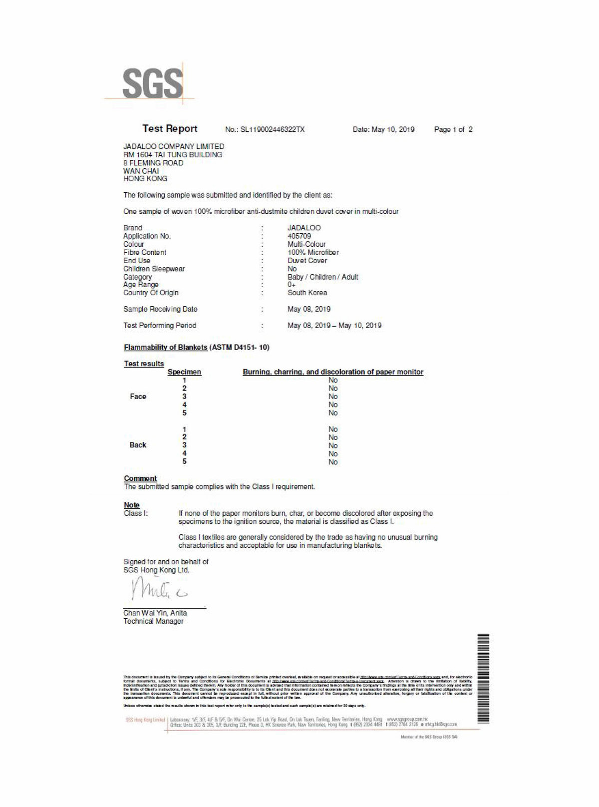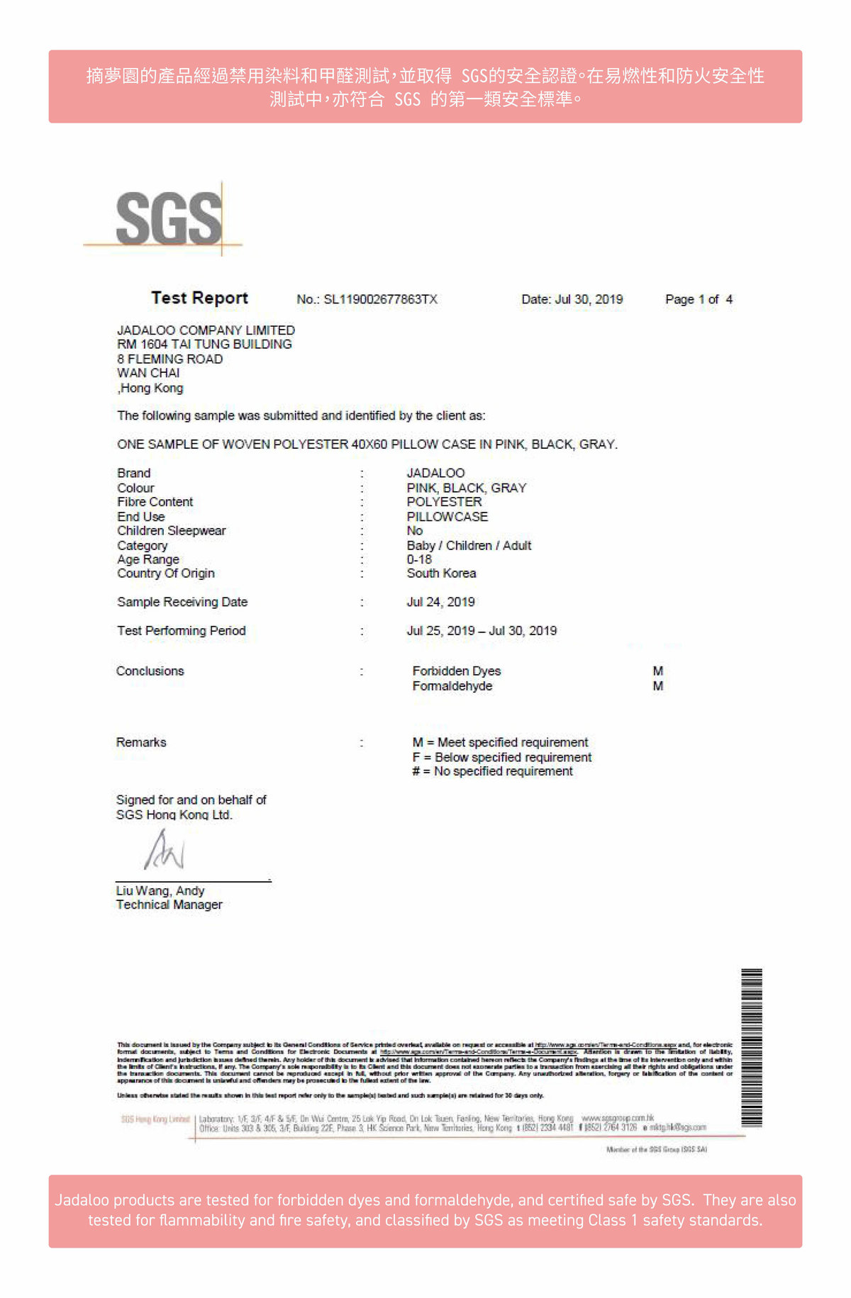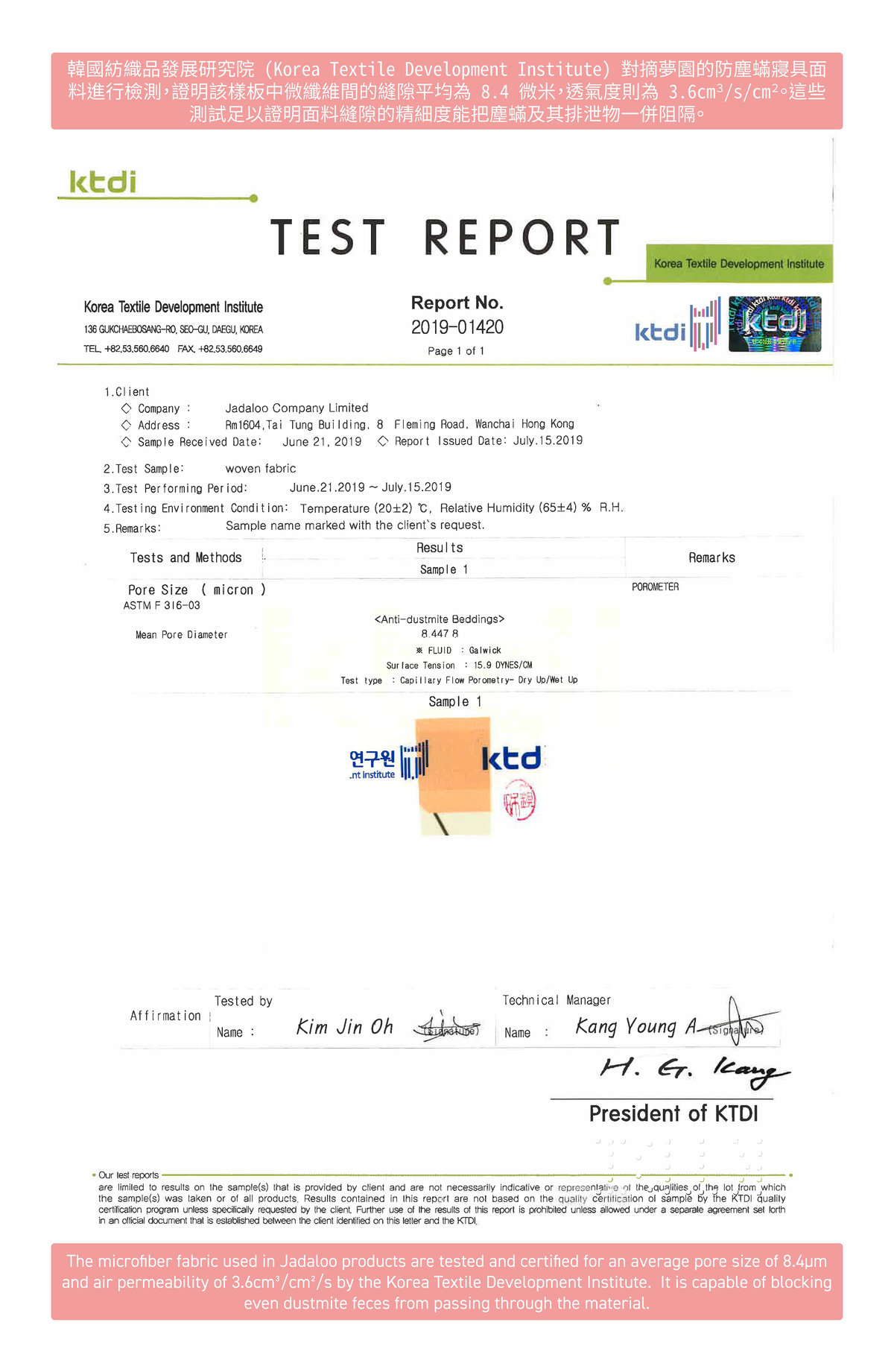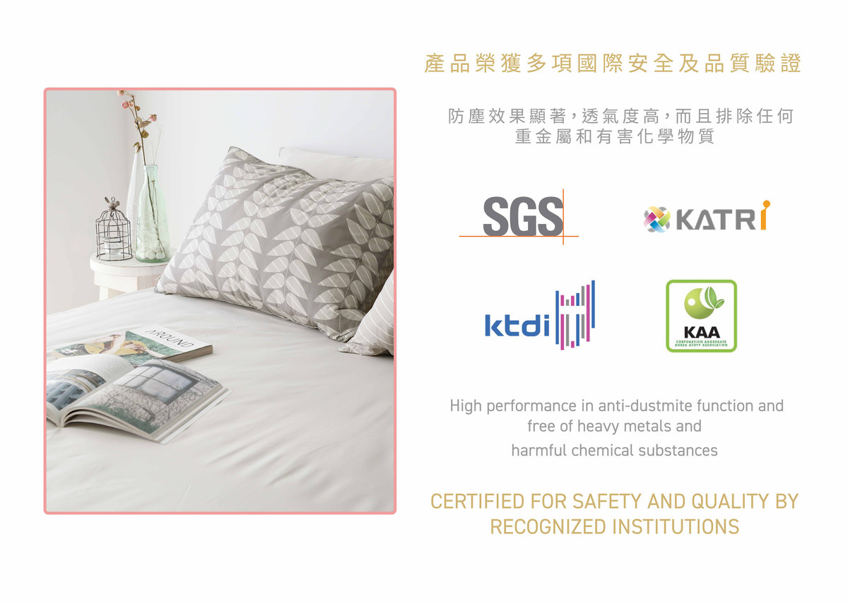 Certified for safety and quality by SGS and KTDI (Korean Textile Development Institute)