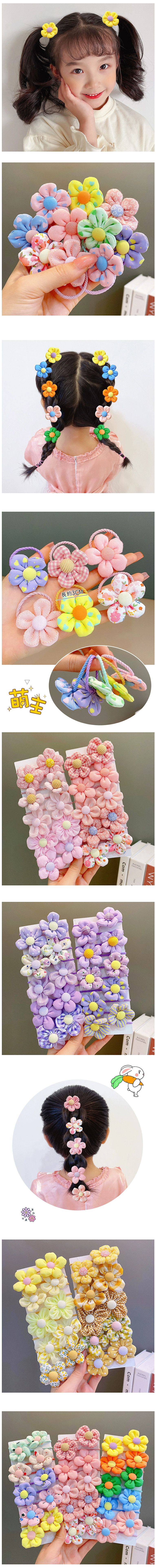 兒童布藝花朵皮筋頭繩髮圈頭飾(笑冬-10個)