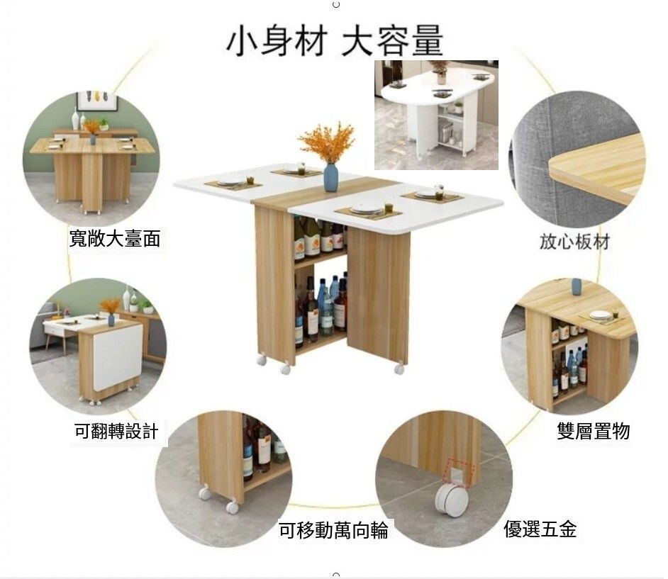 折疊餐桌/簡約現代多功能折疊餐桌/家用小戶型簡易多功能可移動吃飯桌子/材質人造板(刨花板/三聚氰胺板) |