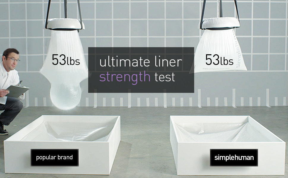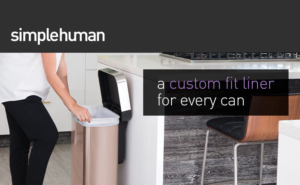 Custom Fit Liners: simplehuman liners are tailored to perfectly fit simplehuman cans so they don't slip and the bag stays completely hidden when the lid is closed. Extra durable plastic and thick double seams prevent rips and tears Convenient drawstring handles are easy to lift, tie and carry Handy dispenser packs have a perforated opening for easy dispensing |