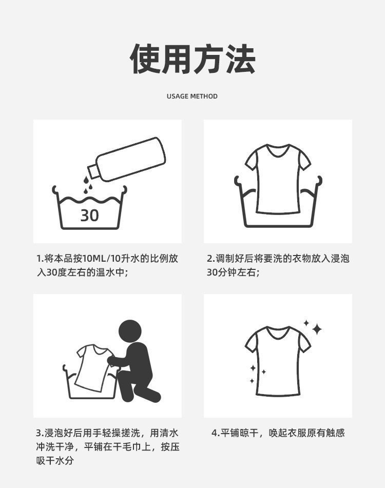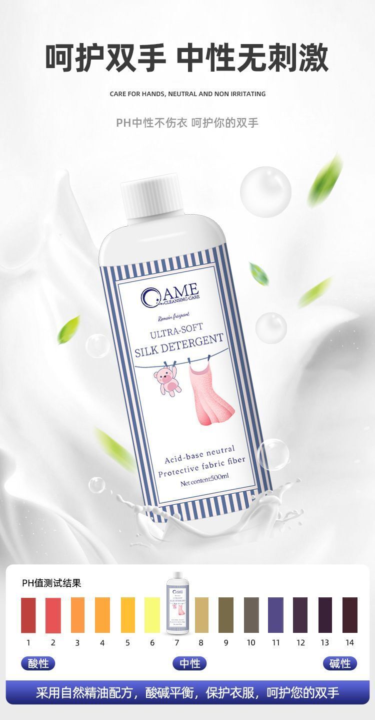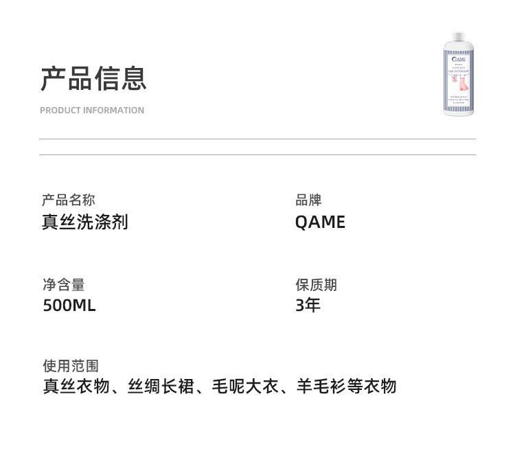Net content: 500ml Scope of application: silk clothing Shelf life: 3 years Silk detergent Plant formula Gentle maintenance Just a drop will give you new clothes Neutral washing Care for clothes bit by bit Make your wife worry-free, your family feel at ease, and you feel comfortable wearing it |