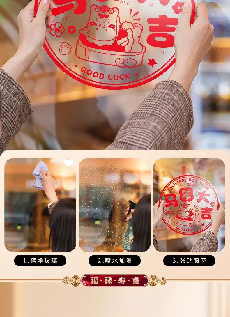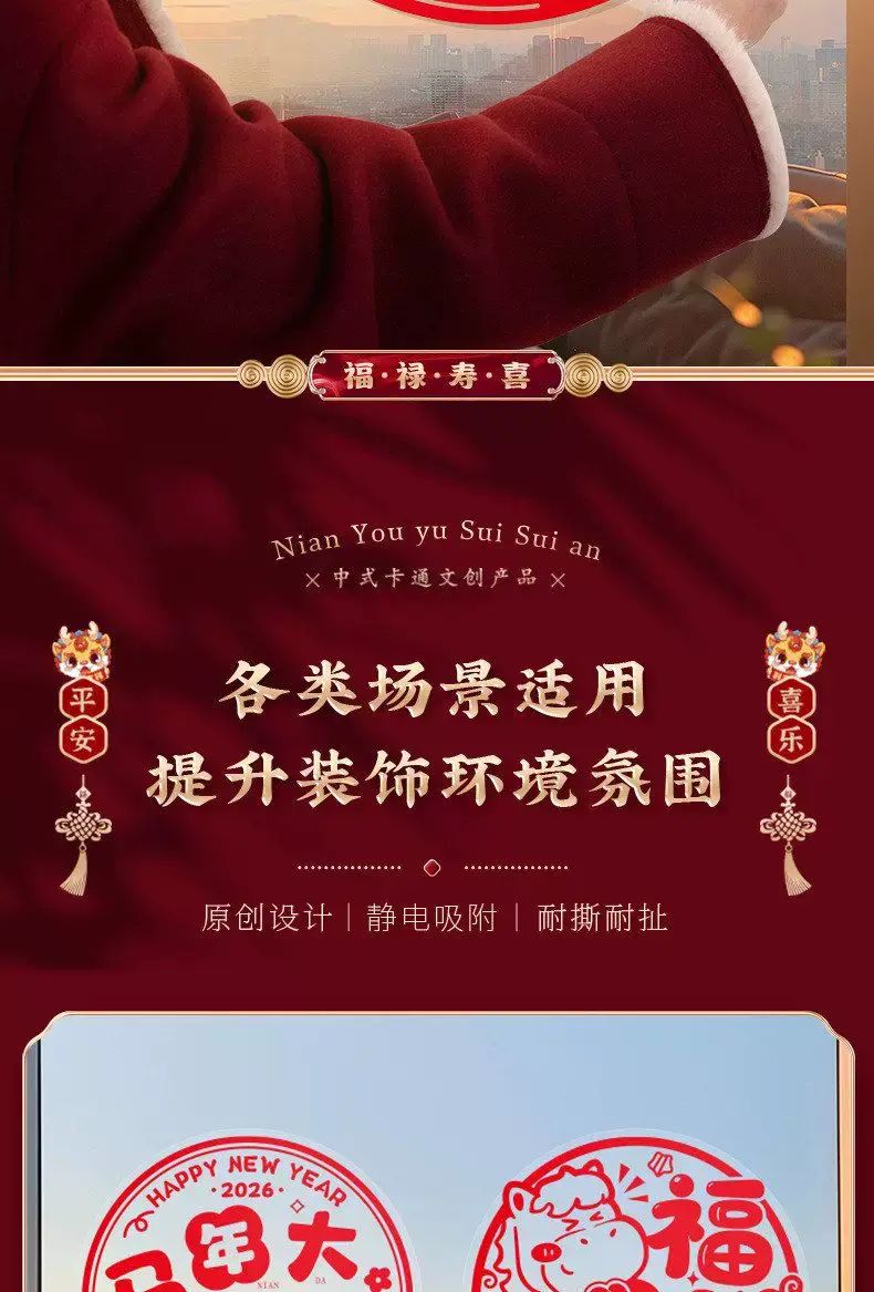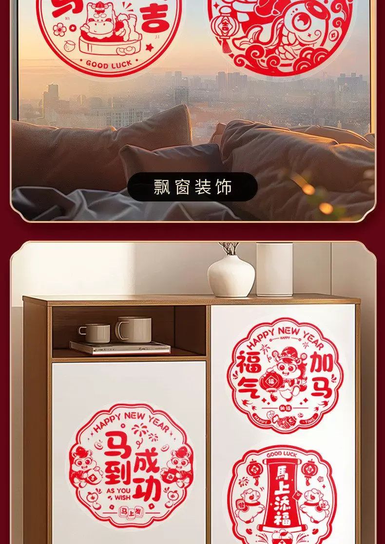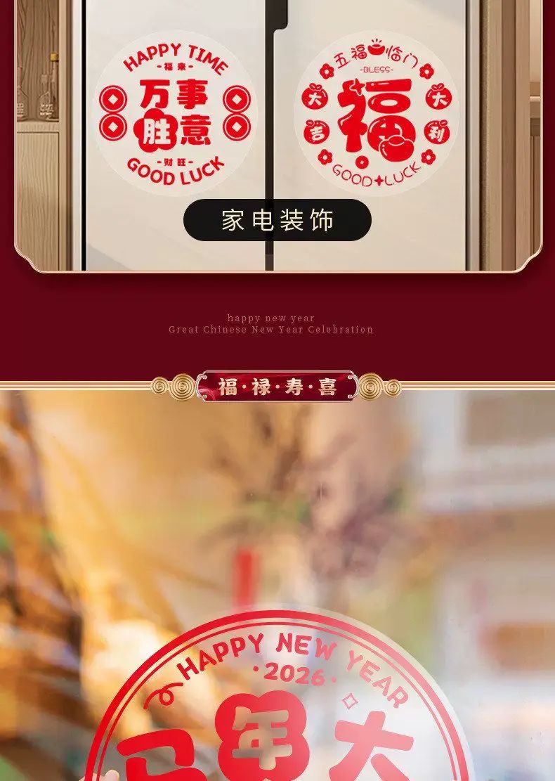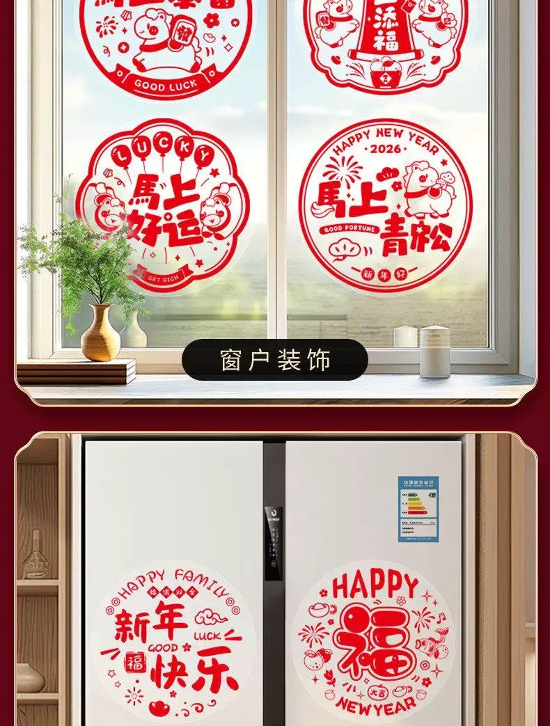Description 2026新款窗花新年福字贴静电贴纸玻璃贴剪纸门贴画窗户装饰品年画;40#新年快乐(10张)