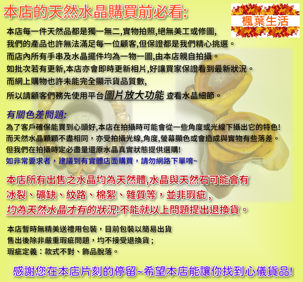 The lack of minerals, imperfect surface, imperfect shape, uneven color and other conditions that are unique to natural crystals cannot be returned or exchanged.