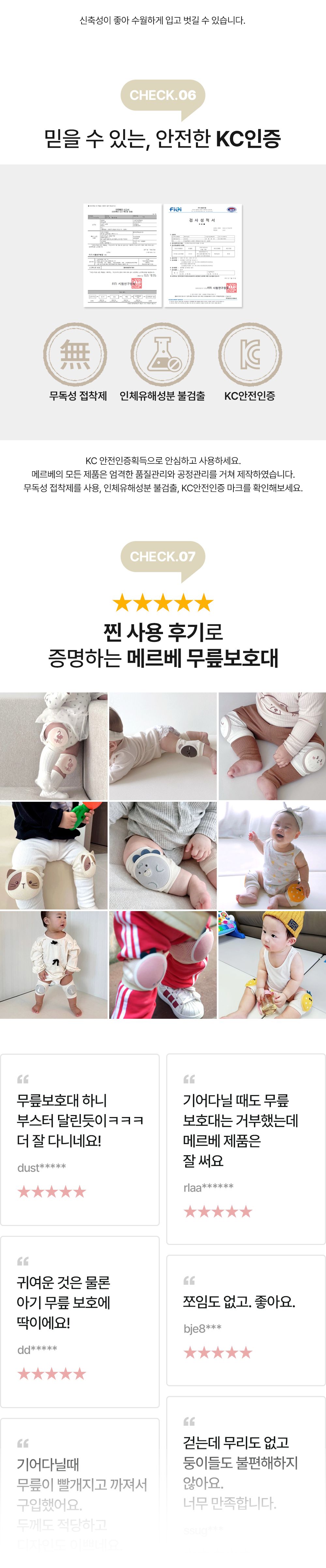 Made in Korea High-quality EVA foam cushion that protects baby's knees perfectly Absorbable and breathable soft cotton for baby's sensitive skin Polyester elastomer fiber band to give a comfortable fit Unique design by Merebe!! Simple and Cute~ Product quality certified by KC (Korea Certification) !!! Patented product in Korea !!! [Fabric] Cotton, Others [Style] Basic & Adorable [Color] Bebe Saurus [Size (in cm)] Please refer to "Size Chart" picture.