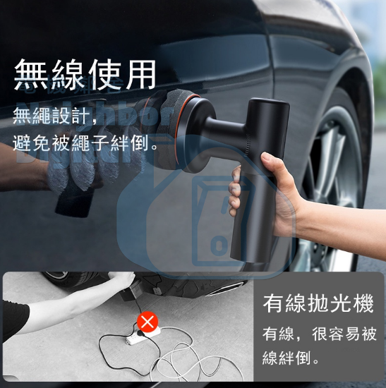 - No need to plug in, it is more convenient to wax the whole car - 45 minutes long battery life, no need to charge halfway, complete the car at one time, no fear of large models - Powerful motor, stable performance, efficient waxing, more delicate polishing - Spin for wide coverage, avoid concentrating on a little over-polishing, uneven paint finish - 2 speed adjustments to meet different body waxing needs |