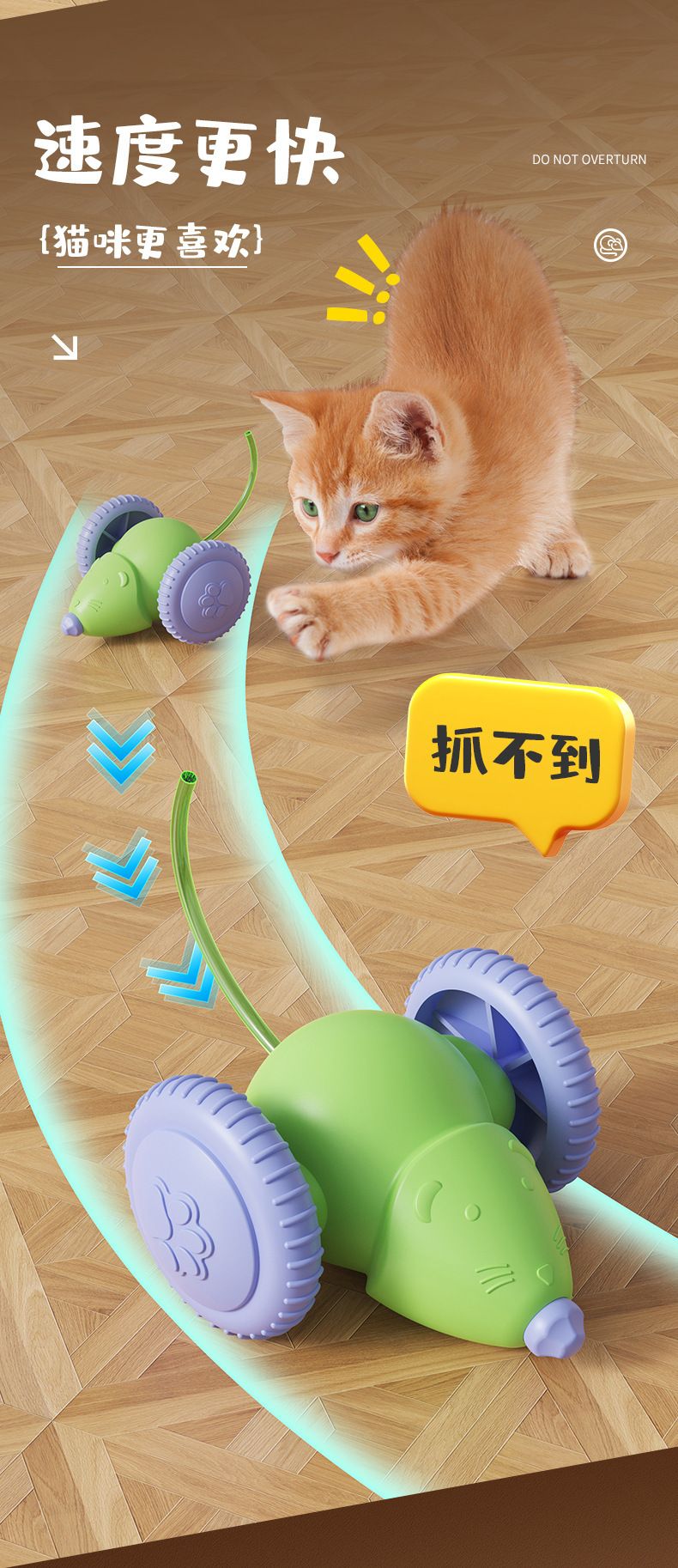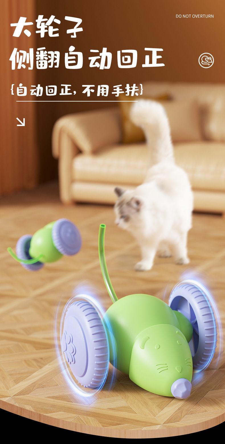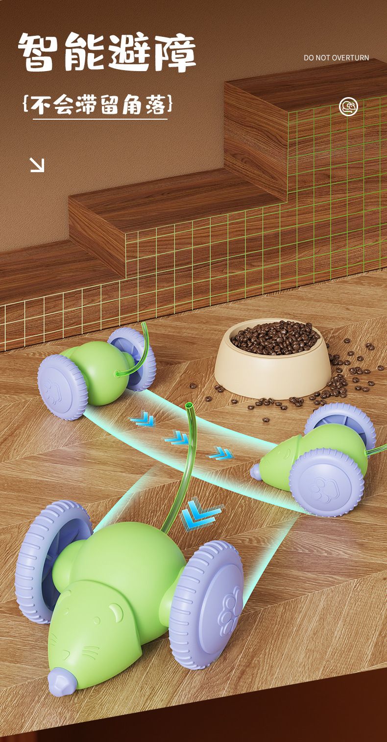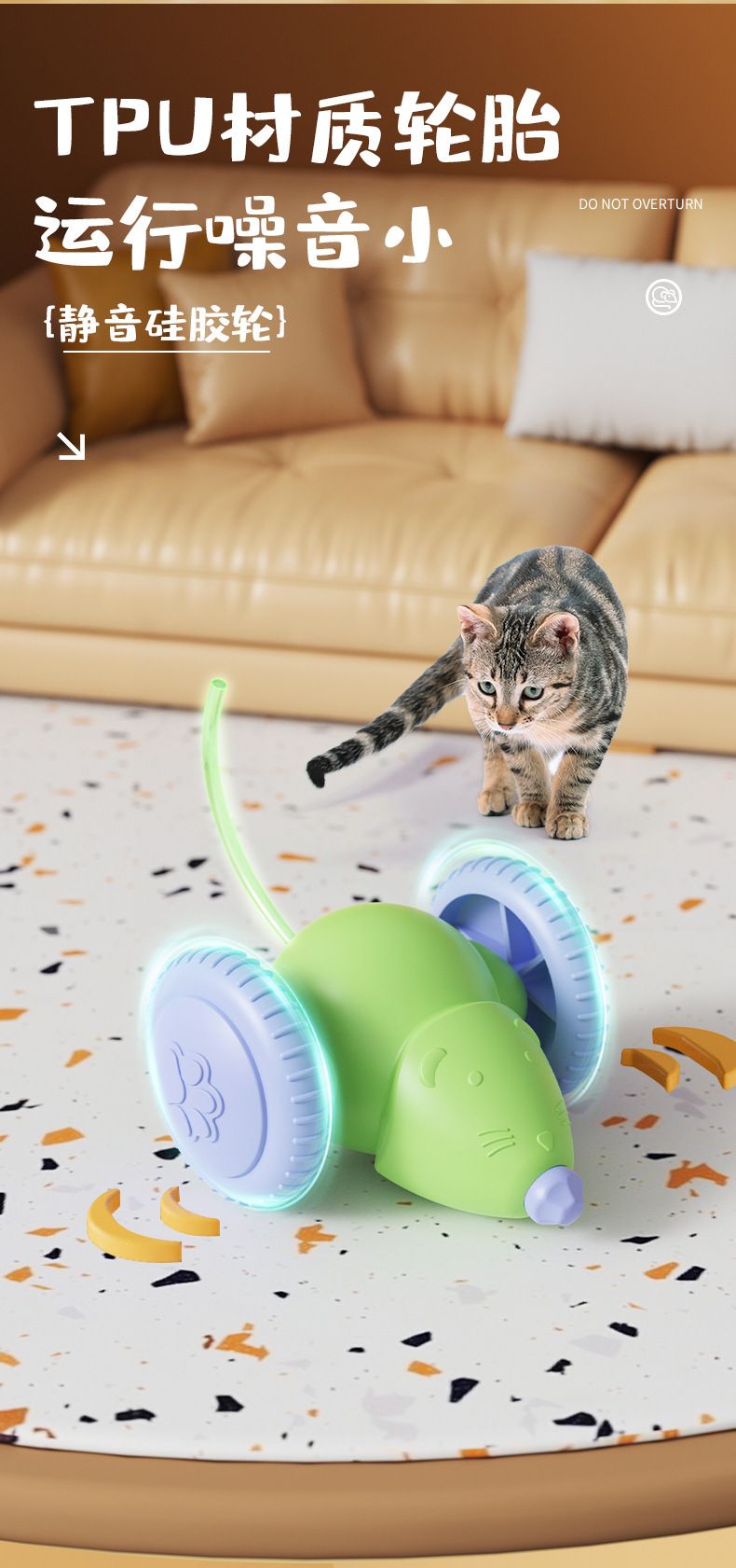 Cat and mouse toys - energy-consuming mouse toys, electric mouse cat teasing stick, kitten self-entertainment and fun cat car - light green