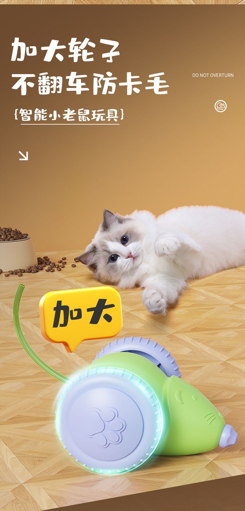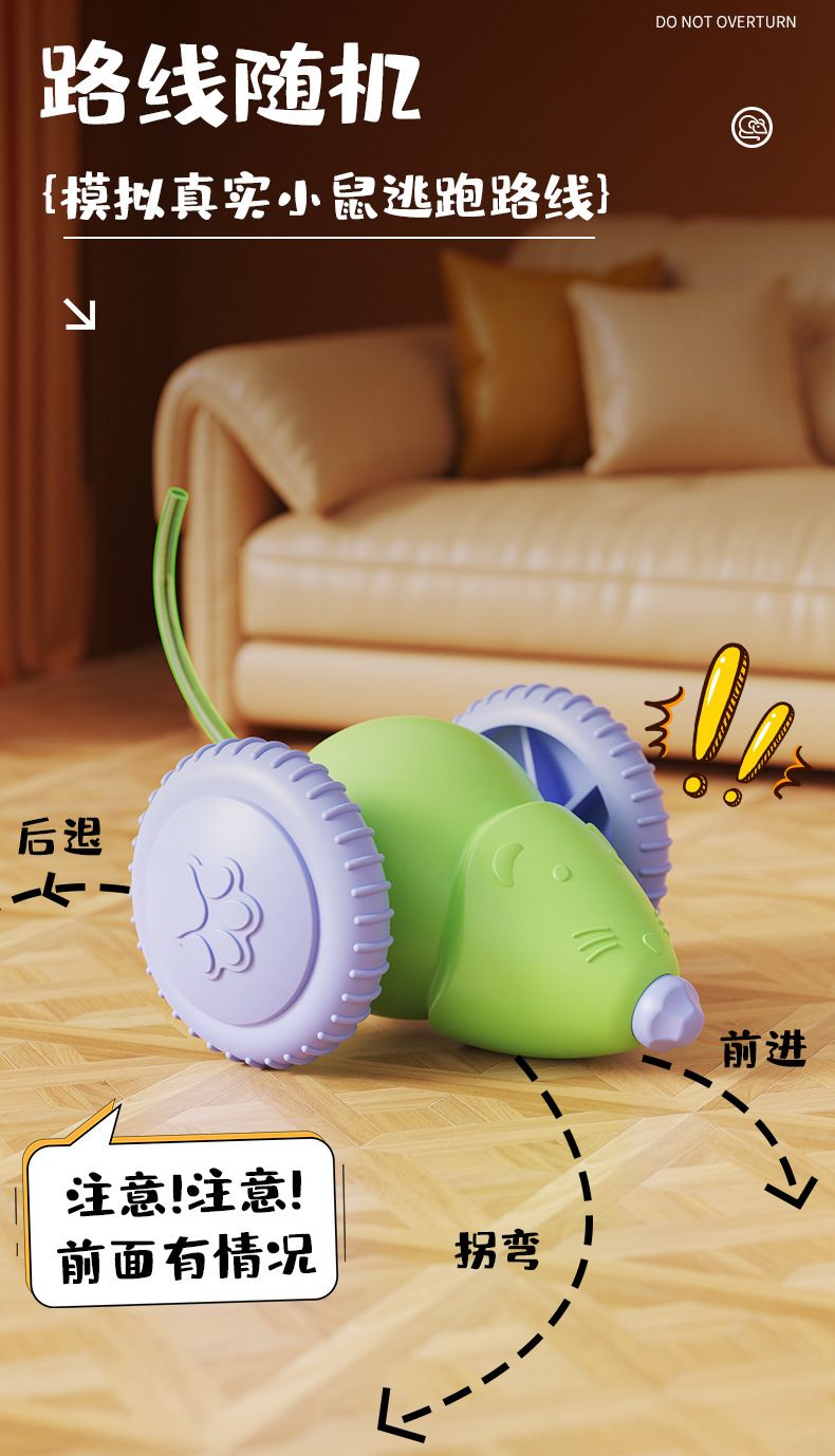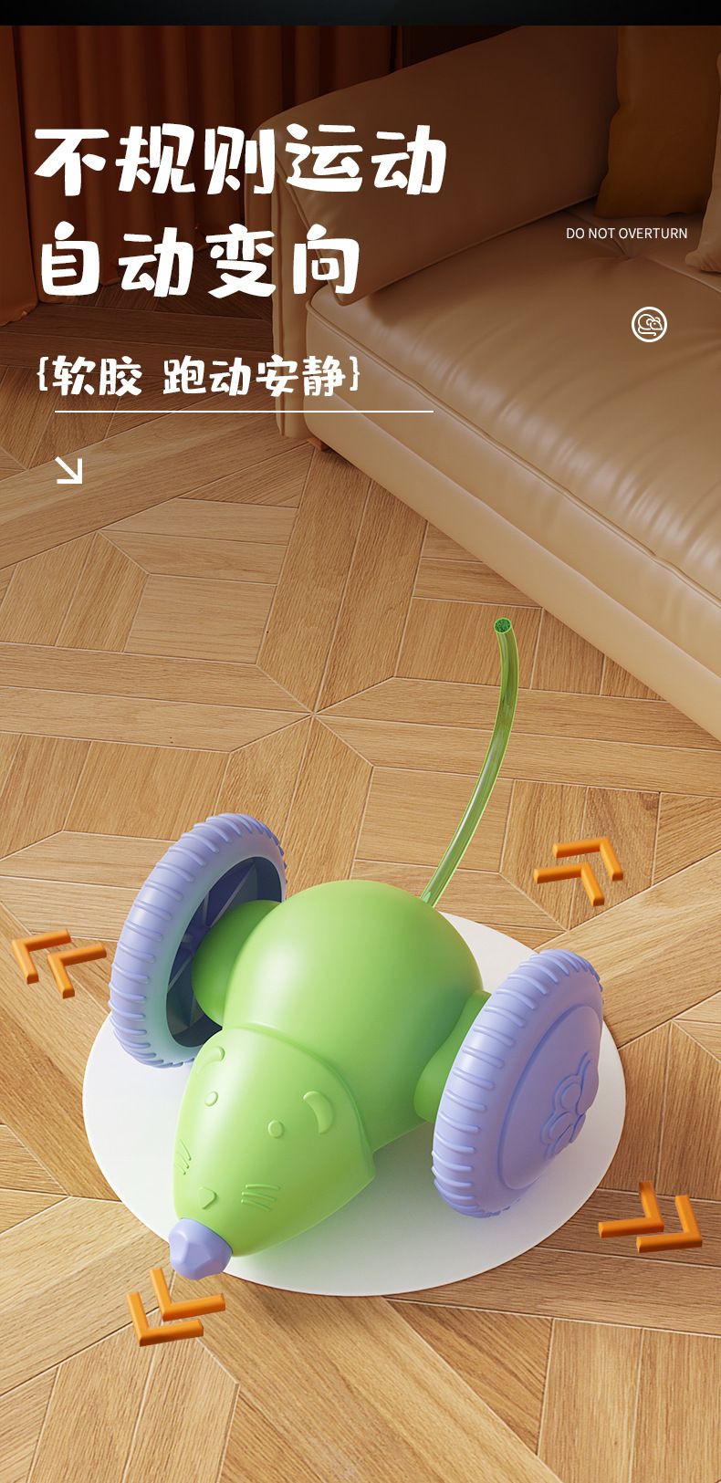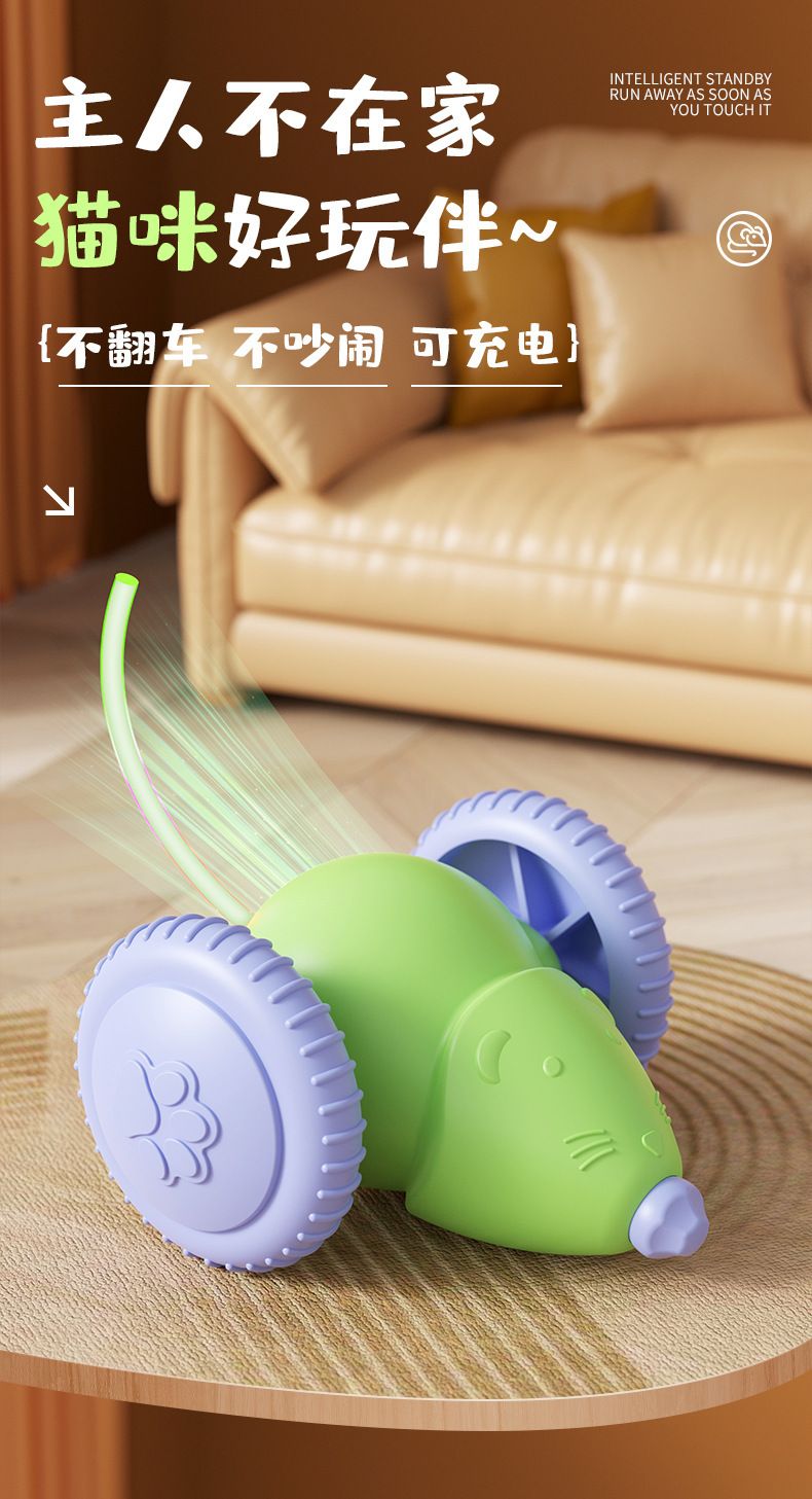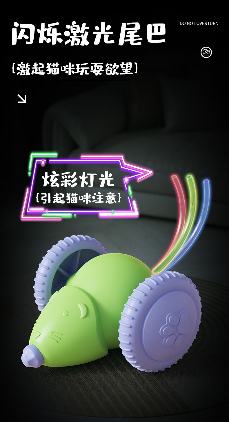 Cat and mouse toys - energy-consuming mouse toys, electric mouse cat teasing stick, kitten self-entertainment and fun cat car - light green