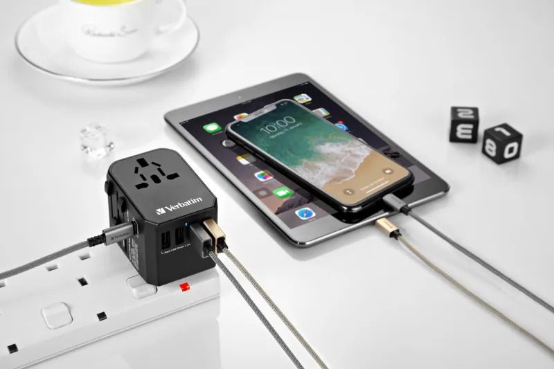 - With 4 built-in international adapters - With full voltage of AC universal socket - 5 ports charger including 4 USB-A ports & 1 Type C port - Built-in spare 8A fuse to provide extra protection - Supplied with pouch for storage - Smart charging technology, automatic distribution of power to the devices |